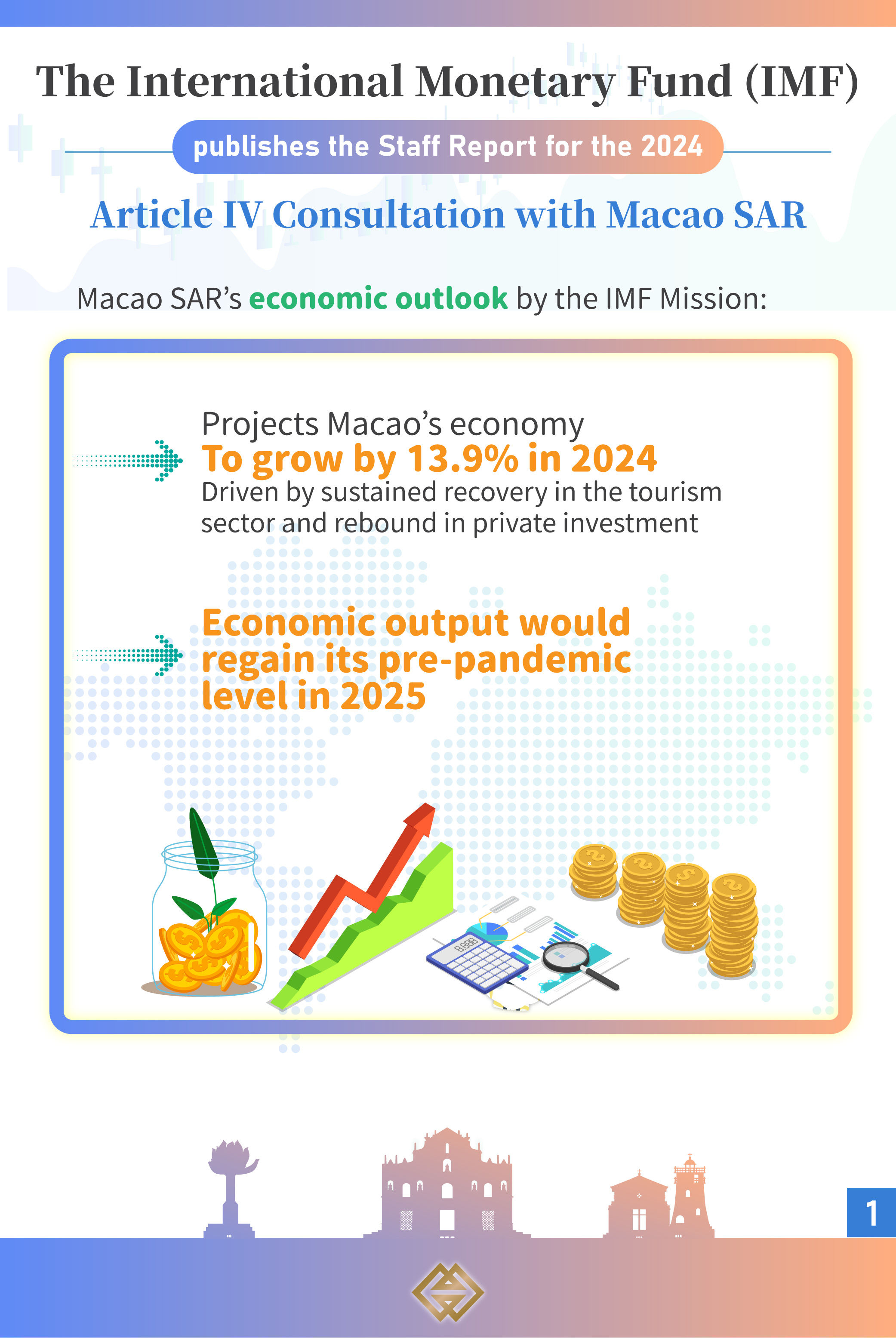 The International Monetary Fund (IMF) has concluded the 2024 Article IV Consultation with Macao Special Administrative Region (Macao SAR) and published its Staff Report today (30 May). The Mission affirmed the SAR Government’s efforts on promoting appropriate economic diversification, and projected Macao SAR’s economy to grow by 13.9% this year.