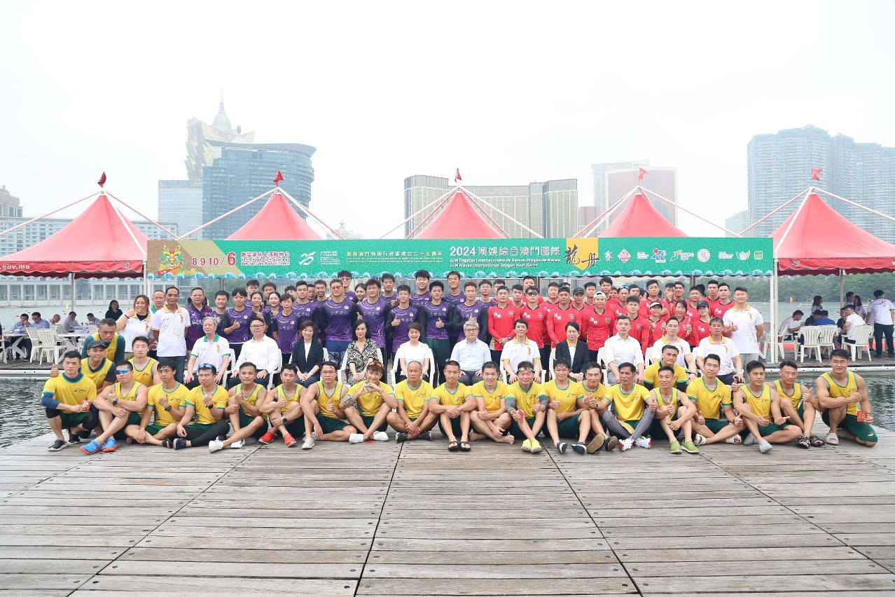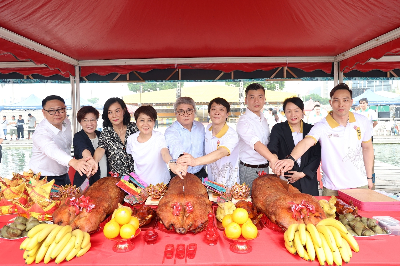 Organized by the Sports Bureau, SJM Resorts, S.A. and the Dragon Boat Association of Macao, China, and co-organised by the Municipal Affairs Bureau and the Public Administration and Civil Service Bureau, the ‘Celebration of the 25th Anniversary of the Establishment of the Macao SAR – 2024 SJM Macao International Dragon Boat Races’ will be held from 8 to 10 June at Nam Van Lake Nautical Centre. A blessing ceremony was held by the Organizing Committee at the same venue today (6 June) to pray for the success of this annual event.