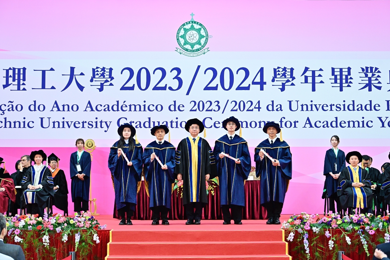 Macao Polytechnic University (MPU) held the graduation ceremony of the academic year 2023/2024 today, June 7th, at 4 PM in the Multi-Sport Pavilion. The ceremony featured the raising of the national flag and the singing of the national anthem. A total of one thousand students graduated, including those receiving doctoral, master's, and bachelor's degrees. During the ceremony, honorary doctorate degrees were also awarded to individuals who have made significant contributions to society and educational development. The Secretary for Social Affairs and Culture, Ao Ieong U, who represented the Chief Executive of the Macao SAR and Chancellor of MPU, stated that MPU has more effectively utilized the academic and research strengths of Macao's higher education institutions in major initiatives such as promoting the moderate diversification of Macao's economy, constructing the Greater Bay Area's technology and innovation corridor, and developing the Portuguese Language Education Alliance in the Greater Bay Area.