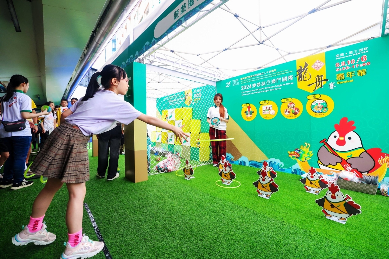Parade performance by cultural and artistic groups will be held during the event. In addition, the ‘2024 SJM Macao International Dragon Boat Races Carnival’ will be held at Nam Van Lake Nautical Centre and Anim’Arte NAM VAN, from 9:30 a.m. to 5 p.m. tomorrow. Various types of booths selling local cultural and creative products as well as snacks and drinks, a themed photo area, booth games and workshops will be on offer. There will also be interactive magic, balloon twisting and street music performances to create a festive carnival atmosphere. Residents and tourists are welcome to come and watch the dragon boat races, experience the festive atmosphere, and jointly create a unique brand of sports tourism in Macao.