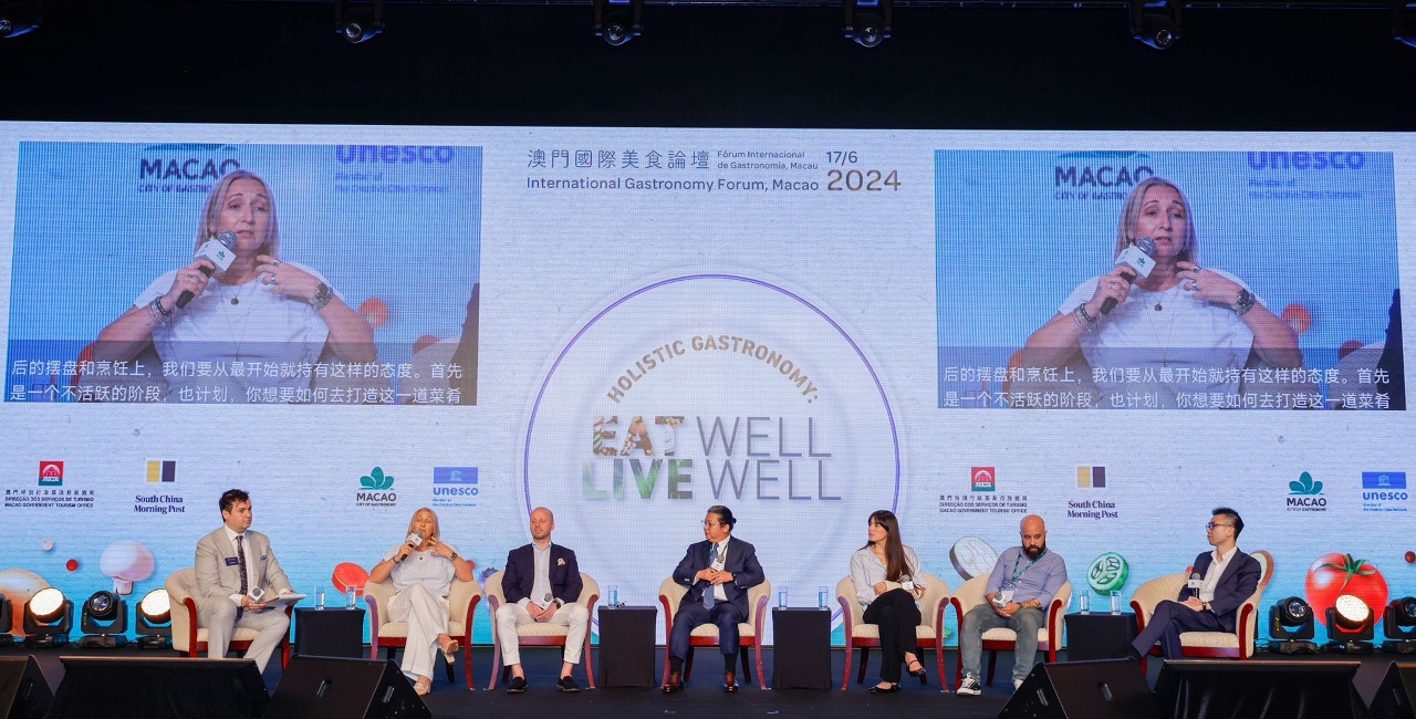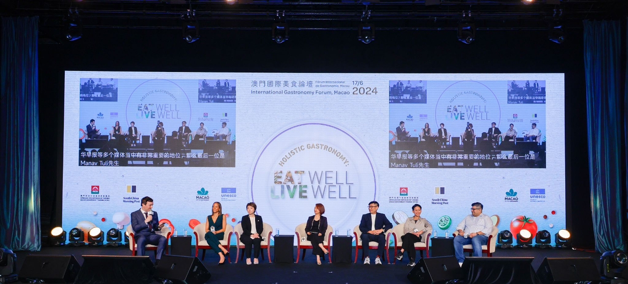 Two panel sessions were held in the morning. Panel Discussion 1: "Exploring Holistic Gastronomy: A Journey into Macao's Culinary and Wellness Landscape" featured Chef and Founder of the restaurant Leela, Manav Tuli, as the keynote speaker. Moderated by veteran journalist from South China Morning Post, Lee Williamson, the session delved into the core principles and philosophies of holistic gastronomy, the intersection of wellness and culinary arts as well as the development trends and visions of the future. This panel not only highlighted the transformative power of holistic gastronomy but also forecasted its promising future in shaping healthier, more sustainable communities. The six panelists include Plant-Based Chef Andreea Apostol; Vice President of Signature Restaurants Operations at SJM Resorts, Jeremy Evrard; Director of SommAsia, Adolphus Foo; Assistant Manager of Mono, Abbi Grace; Executive Chef of Andaz, Macau, André Lai and Culinary Operations Director of Studio City, Kenneth Law.