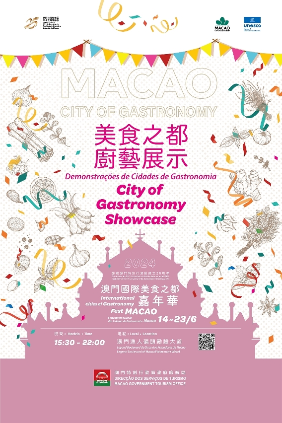 Please visit the themed website for the latest information and schedule of the “City of Gastronomy Showcase” (including 60 wonderful sessions of culinary showcase presented by 26 Creative Cities of Gastronomy from worldwide): https://www.macaotourism.gov.mo/en/article/events/gastronomy-fest-2024.