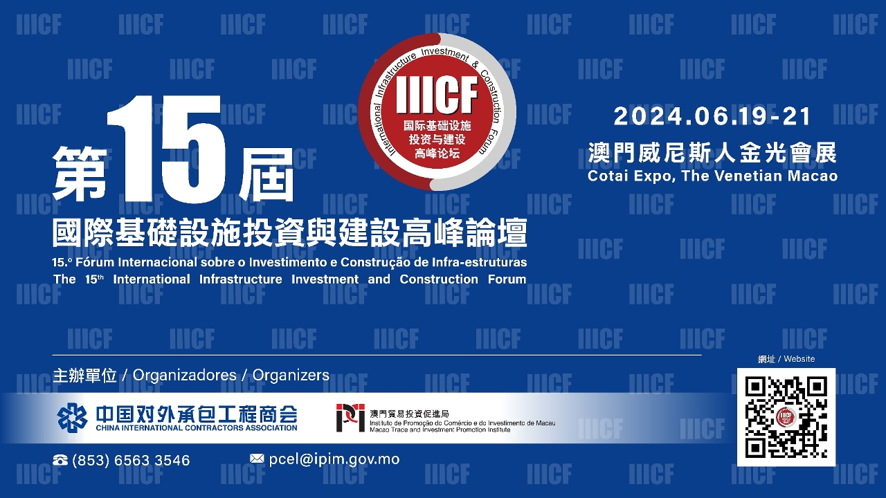The 15th International Infrastructure Investment and Construction Forum (IIICF), co-organised by the China International Contractors Association and the Macao Trade and Investment Promotion Institute (IPIM), will take place from 19 to 21 June at Cotai Expo, The Venetian Macao. More than 3,500 global infrastructure professionals from government and industry from over 70 countries and regions, including more than 60 ministerial-level guests, will attend the three-day event. Under the theme “Green Innovative Digital Connectivity”, this year’s IIICF aims to promote interconnectivity in the sector through more than 200 themed and supplementary activities and the largest exhibition in its history, covering 8,000 square metres.