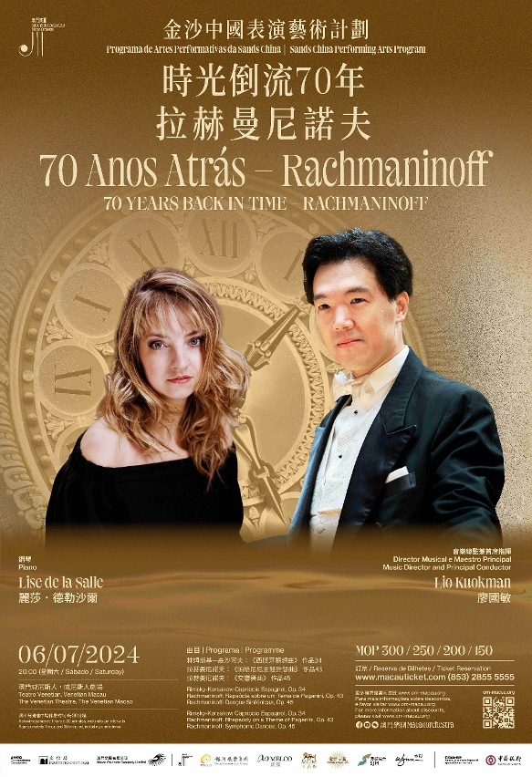 Presented by the Cultural Affairs Bureau, the Macao Orchestra Company Limited and the Sands China Performing Arts Programme, the concert “70 Years Back in Time – Rachmaninoff” will be held on 6 July (Saturday), at 8pm, at The Venetian Theatre. In collaboration with French pianist Lise de la Salle, under the baton of the Macao Orchestra’s Music Director and Principal Conductor Lio Kuokman, the Orchestra will perform three works by Russian composers Nikolay Rimsky-Korsakov and Sergei Rachmaninoff. Tickets are now on sale at the Macau Ticketing Network.