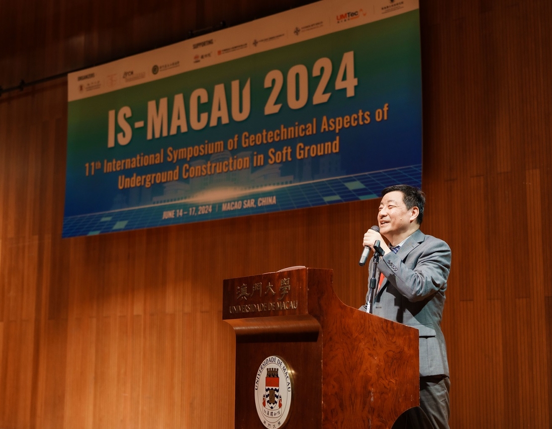 The 11th International Symposium of Geotechnical Aspects of Underground Construction in Soft Ground (IS-Macau 2024) was held at the University of Macau (UM). The symposium was jointly organised by UM, Technical Committee 204 (TC204) of the International Society for Soil Mechanics and Geotechnical Engineering (ISSMGE), the Civil Engineering Laboratory of Macau, and the Macau Association for Geotechnical Engineering. More than 150 delegates from 15 countries and regions, including the UK, Norway, Denmark, Italy, Dubai, Singapore, Japan, mainland China, Hong Kong and Macao, attended the symposium to exchange views and promote cooperation on geotechnical aspects of underground construction in soft ground.