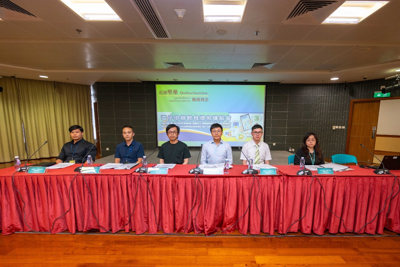 The explanatory session was held in S. Lourenço Activity Centre on 26 June and about 60 license applicants, representatives of applicants, and representatives of the relevant sector and groups were in attendance. During the explanatory session, the representatives of IAM, the Public Administration and Civil Service Bureau, the Land and Urban Construction Bureau and the Fire Services Bureau introduced the content of reform of the “One-stop Licensing Procedures for Food and Beverage Establishments” in detail, and gave explanations on opening an account on the Business & Associations Platform, signing service of construction documents and authorisation letters, along with the operation details of the system involving construction works and fire services, etc. In addition, the common issues in the approval review and inspection processes were also explained.