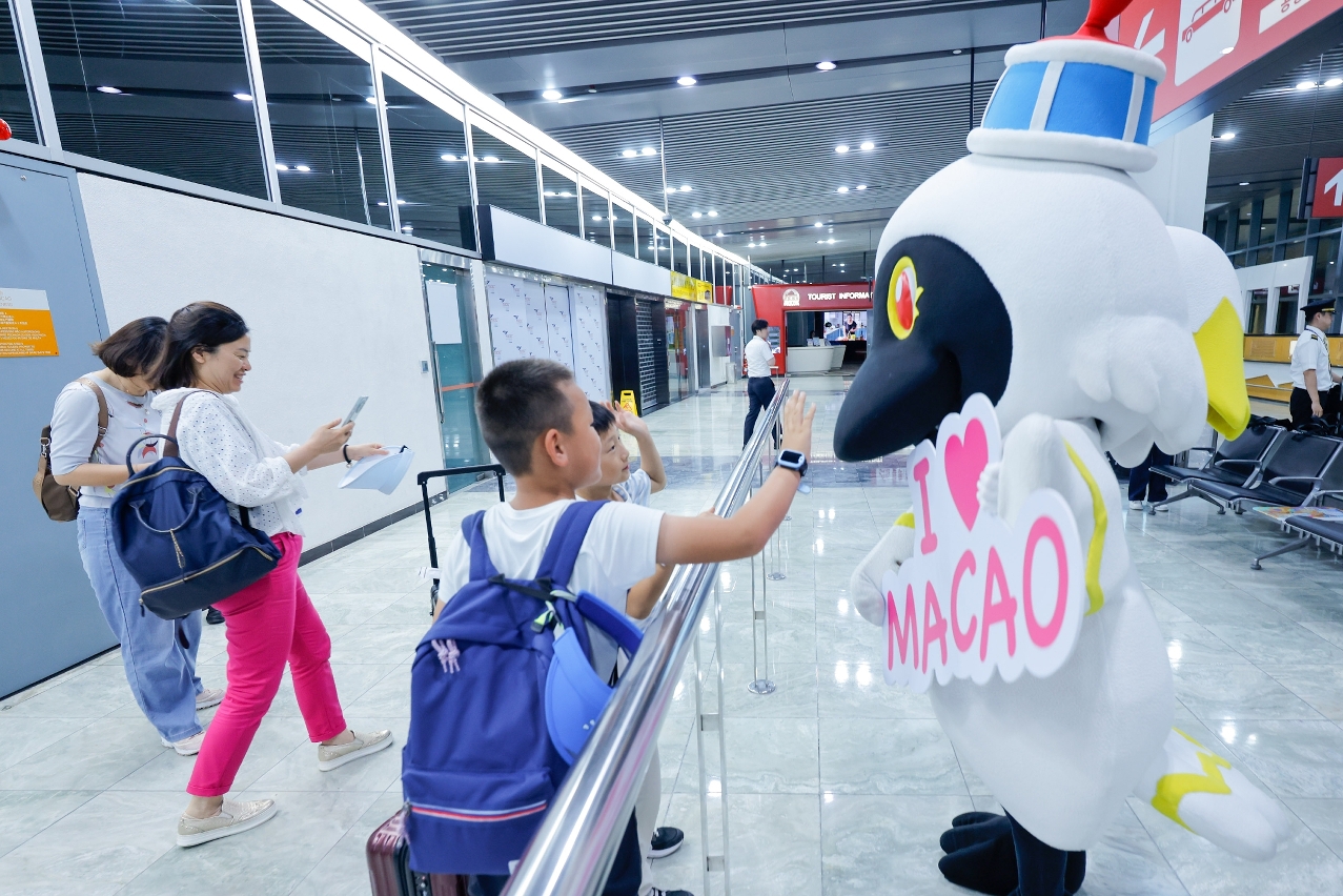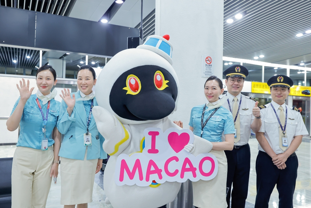 The first flight of Korean Air’s new route from Seoul, KE169, arrived at Macao in the midnight of 1 July. Arranged by MGTO, Macao Tourism Mascot MAK MAK welcomed and presented souvenirs to the passengers including Korean media delegates at Macau International Airport, extending the city’s warm hospitality.