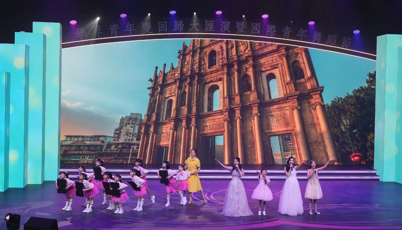 More than 700 youth students from schools across Macao and cities in the Guangdong–Hong Kong–Macao Greater Bay Area demonstrated the results of their hard work in months of dance rehearsals to a live audience of over 1,600 people, as well as viewers watching the performances on TV and livestream. To honour the 75th anniversary of the founding of the People’s Republic of China and the 25th anniversary of the Macao’s return to the motherland, the young people and students delivered their performances in the best way possible, fully showing a sense of unity and jointly witnessing the developments of the motherland and Macao.
