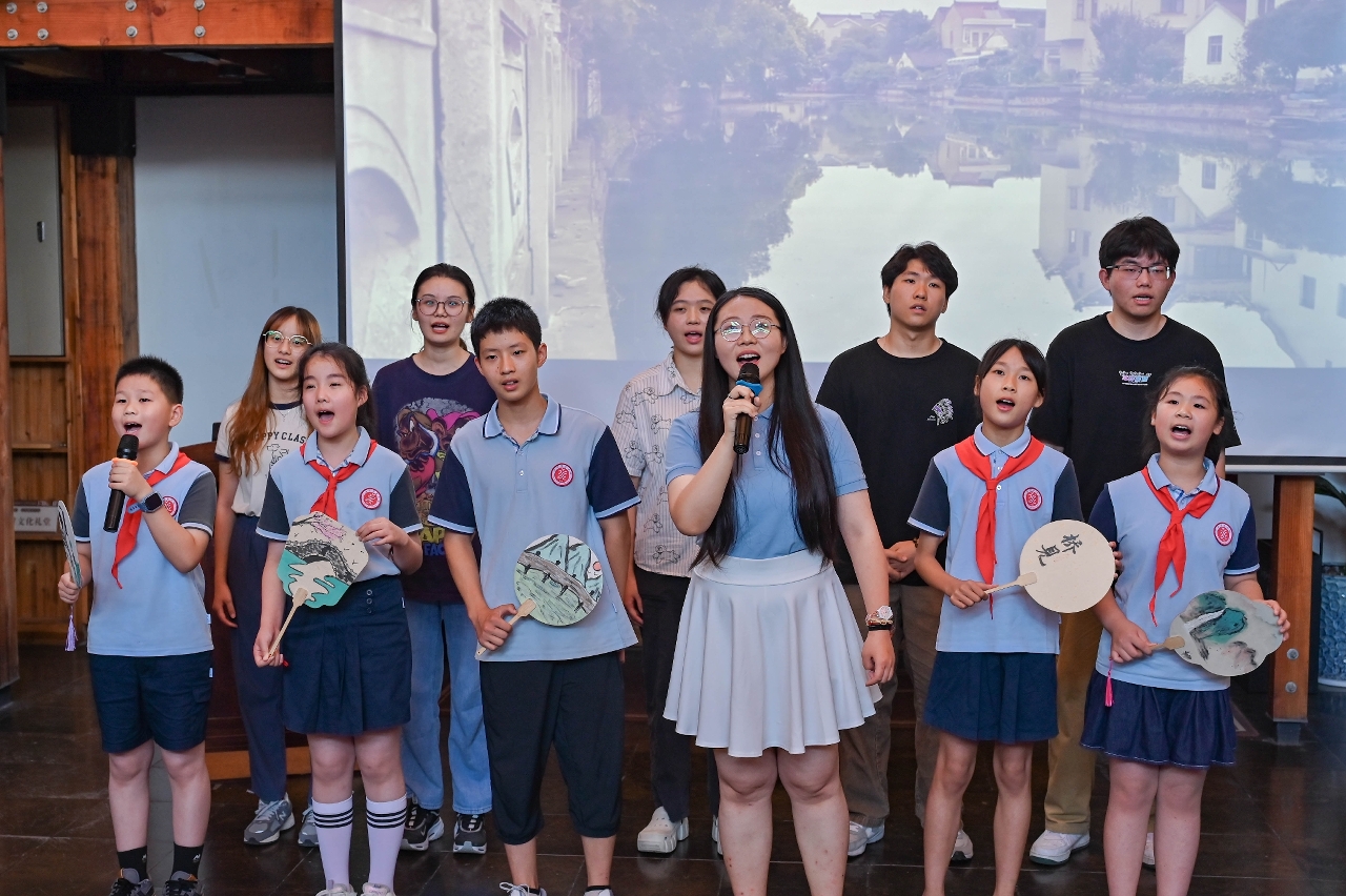 During the service-learning project in Jiangcun, students and faculty from UM, Fudan University, and Jiangcun Experimental School were divided into five groups: ‘The Story of Fei Xiaotong and Jiangcun’, ‘The Evolution of Education in Jiangcun’, and three focus groups on ‘Exploring Jiangcun’s Ancient Bridges’. They engaged in various exploration activities in the area surrounding Jiangcun. The ‘Story of Fei Xiaotong and Jiangcun’ group explored the connection between Fei Xiaotong and Jiangcun through interviews with local villagers, a visit to the Fei Xiaotong Memorial Hall, and the study of historical materials. The ‘Evolution of Education in Jiangcun’ group interacted with villagers to understand the local educational environment and its development. The ‘Exploring Jiangcun’s Ancient Bridges’ groups studied the history and culture of Jiancun’s ancient bridges by visiting historical sites and reviewing village records. They also created catchy folk songs, scale models of bridges, and a brochure on ancient bridge preservation.