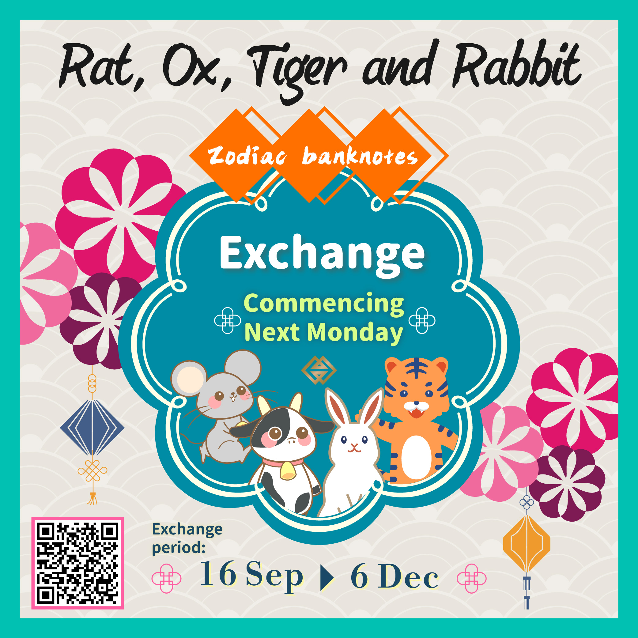 The online registration process for the exchange of four previously issued Zodiac Banknotes (including the Rat, Ox, Tiger and Rabbit Zodiac Banknotes) has already been completed successfully. Starting from next Monday (16 September), all participating banks will conduct the exchange with registrants for the mentioned banknotes.