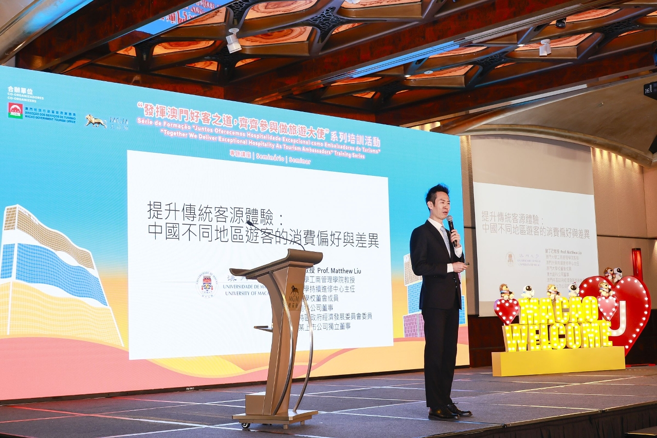 The second themed seminar under the “Together We Deliver Exceptional Hospitality as Tourism Ambassadors” Training Series was held at the Grand Ballroom of MGM Macau today (5 November), featuring Director of the Centre for Continuing Education and Professor of the Faculty of Business Administration at the University of Macau, Matthew Ting ChiLiu, and Managing Director of 3 Hani Enterprises Ltd., Sharifa Leung, as guest speakers.