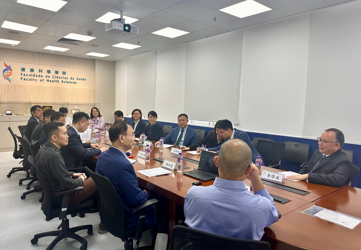 A delegation led by Lei Wai Seng, deputy director of the Islands Healthcare Complex – Macao Medical Center of Peking Union Medical College Hospital (Macao Union Hospital), visited the University of Macau (UM) and was warmly received by Ge Wei, vice rector of UM. The two parties had in-depth discussions on research collaboration, with the hope of promoting research and technological innovation in basic and clinical medicine.