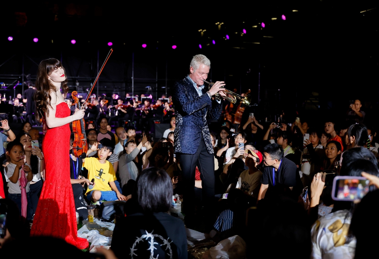 Macao Orchestra’s first outdoor lawn concert “Starry Symphony at the Lawn” was successfully held at the Cultural Centre Plaza on the evening of 16 November (Saturday), attracting more than 700 music enthusiasts. Under the baton of Lio Kuokman, the Music Director and Principal Conductor of Macao Orchestra, the Orchestra and the trumpet virtuoso Chris Botti jointly led the audience to an exceptional audio-visual journey.