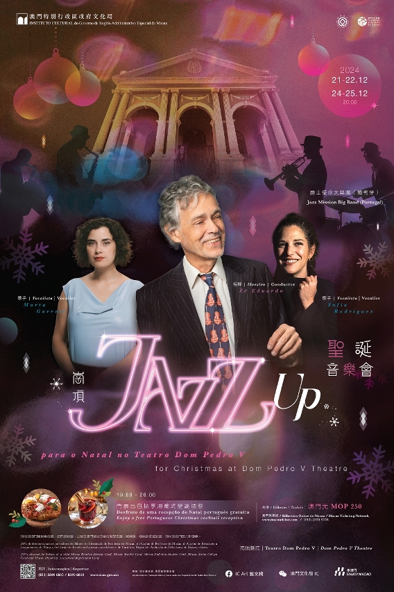 Tickets for the concert “Jazz Up for Christmas at Dom Pedro V Theatre” are priced at MOP 250. Seating is not assigned. Spectators with tickets can enjoy Portuguese and Christmas snacks and drinks at the pre-concert cocktail reception. During the ticket purchase period, holders of a valid Macao Resident Identity Card, Macao Teacher Card, Macao Full-time Student Card, Macao Senior Citizen Card and Macao Disability Assessment Registration Card can enjoy a 20% discount. Each cardholder can only use one discounted ticket. 24-hour ticketing hotline: 2855 5555; online booking at www.macauticket.com.