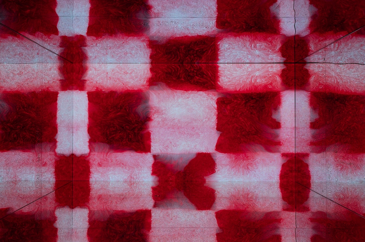 ‘Icy Fire’ is a digital ink generative video art installation measuring 7.5 metres by 4 metres by 4.8 metres. It consists of a high definition LED panel and multiple mirrored walls, ceiling and floor. The piece uses digital ink generative video art and AI techniques to depict the melting of glaciers through the splashing of ink and the artistic language of geometric abstraction, with a colour gradient shifting from cold to warm. The installation combines sound, light, and immersive settings to allow audiences to experience and appreciate the innovation and development of Chinese ink art in the digital and AI era.