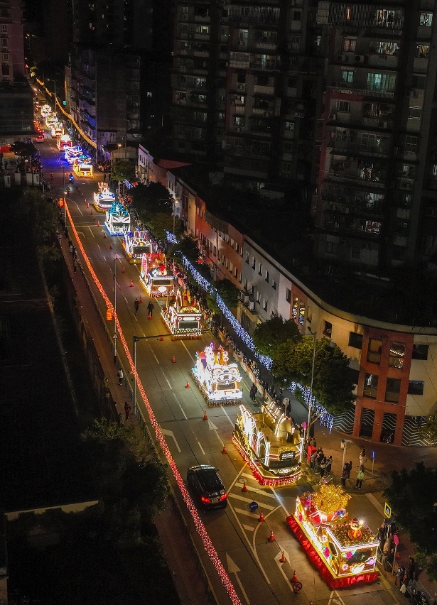 With a spectacular lion dance performance, the second float parade was grandly unveiled in the northern district. The floats set off from Estrada Marginal da Ilha Verde, passed through Avenida do Conselheiro Borja, Estrada do Arco, Estrada da Areia Preta, Avenida de Venceslau de Morais, Rua Quatro do Bairro da Areia Preta, Avenida da Longevidade, Rua do Mercado de Iao Hon and arrived at Iao Hon Market Garden. The procession attracted the gaze and keen welcome of spectators along the route.