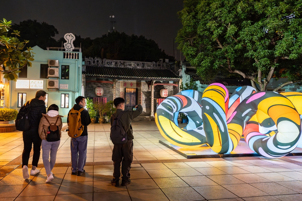 At specific timeslots every Saturday during the event, 66 pop-up sessions enlivened designated locations, including giant inflatable doll, electronic keyboard performance, funny balloon show, parent-child workshop, cartoon painting, Mini band, parent-child drumming interaction, guitar show and electronic cello performance. The parallel activity “Luminescent Night at Travessa do Armazém Velho 2024” also took place during Light up Macao 2024. In addition to online games and offline workshops, Travessa do Armazém Velho and the vicinity were embellished with illuminations and infused with unique charm as night fell.