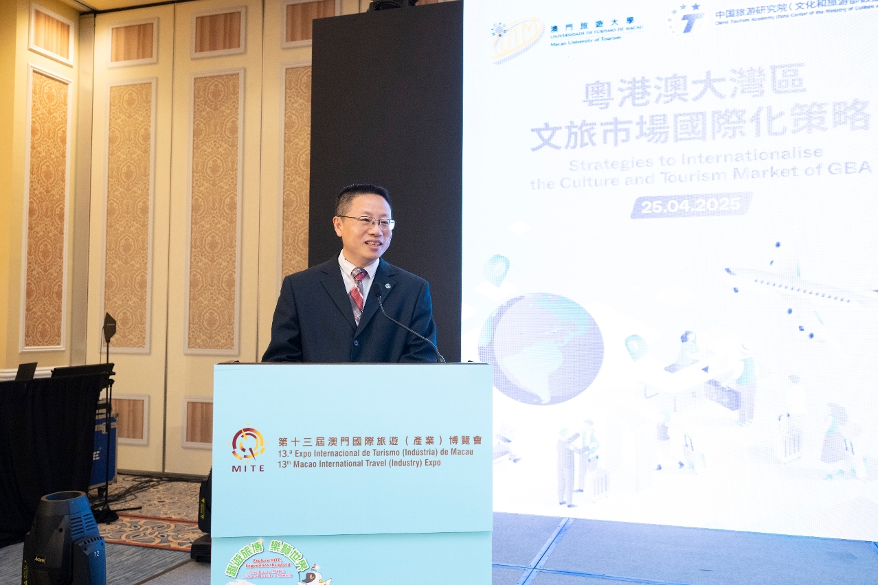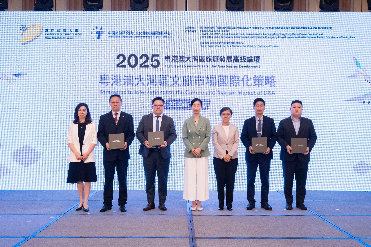 The Macao University of Tourism (UTM), the relying unit of the “Tourism Education and Training Base for the Guangdong-Hong Kong-Macao Greater Bay Area” and the coordinating unit of the “Alliance for Developing Macao as the Guangdong-Hong Kong-Macao Greater Bay Area Tourism Education and Training Base”, in partnership with the China Tourism Academy, hosted the 2025 High-level Forum on Greater Bay Area (GBA) Tourism Development on April 25 during the 13th Macao International Travel (Industry) Expo, MITE. As a key player in advancing tourism education and regional collaboration, UTM brought together over 150 government representatives, industry experts, academics, and university students to strategise on elevating the GBA’s global appeal as a world-class culture and tourism destination.