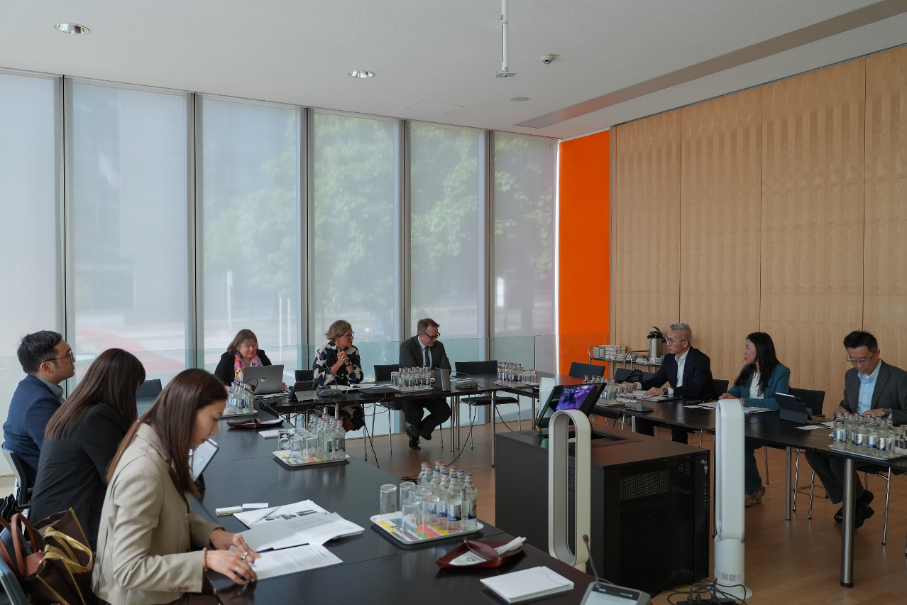 From 29 April to 2 May, the delegation continued their visit in Luxembourg. They paid a courtesy call on H.E. Mr. Hua Ning, Ambassador of the People’s Republic of China to the Grand Duchy of Luxembourg, during which both sides exchanged views on strengthening Macao–Luxembourg cooperation in the fields of economy and finance. The delegation also visited Clearstream Group S.A./the International Central Securities Depository (ICSD) and one of the largest law firms in Luxembourg. The visit served to understand Luxembourg’s legal and regulatory framework concerning investment funds, its financial supervision policies, and the latest developments in the bond market. Discussions also centred on how Luxembourg’s experience could provide insights for Macao’s legislative proposals on the “Investment Fund Law” and the “Securities Law”, as well as on fostering interoperability between the Macao Central Securities Depository and Clearing Limited (MCSD) and the ICSD to promote greater connectivity between the two bond markets.
