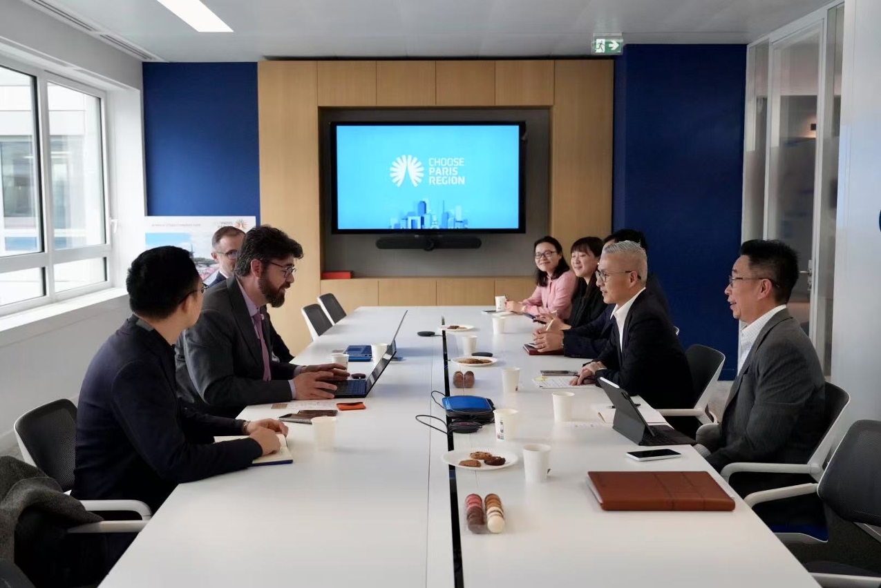 On 25 April, the delegation visited Paris, France, and met with H.E. Mr. Deng Li, Ambassador of the People’s Republic of China to the French Republic. The two sides held in-depth exchanges on enhancing bilateral cooperation between Macao and France, and explored collaboration opportunities in areas such as cross-border e-commerce, traditional Chinese medicine, technological innovation, and youth talent development. It is expected that by leveraging Macao's role as a “Commercial and Trade Co-operation Service Platform between China and Portuguese-speaking Countries,” the visit would contribute to industrial development across the nation, Macao, and France, as well as the broader European region, and further tap into cooperation potential with Latin language-speaking countries. On the same day, the delegation also visited the Choose Paris Region and held discussions with representatives from the Paris Region's international attractiveness agency. Topics included investment and entrepreneurship policies in the Paris Region, the planning and operation models of local science and technology parks, as well as the incubation and development of start-ups. Opportunities for future collaboration were also explored.