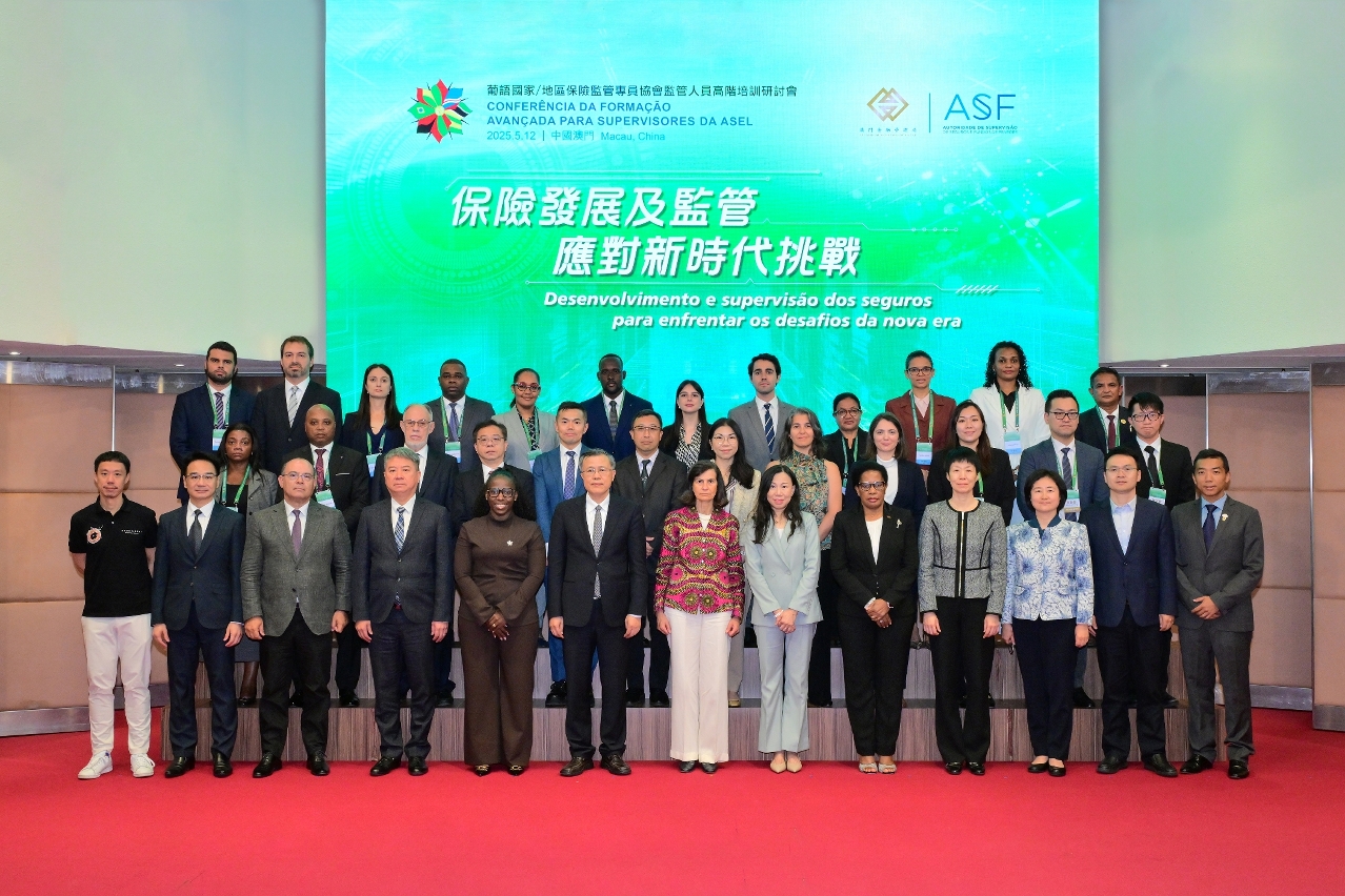 To leverage Macao’s role as the “Financial Services Platform between China and Portuguese-speaking Countries,” the Monetary Authority of Macao (AMCM) and the Insurance and Pension Funds Supervisory Authority of Portugal (ASF), jointly organised the “High-Level Training and Study Visit ” for the peer regulators of the “Association of Lusophone Insurance Supervisors (ASEL) ”, providing training for 19 insurance regulators from Portugal, Mozambique, Angola, Brazil, Timor-Leste, Cape Verde, and Macao. A conference held on 12th May marked the official launch of the series of activities.