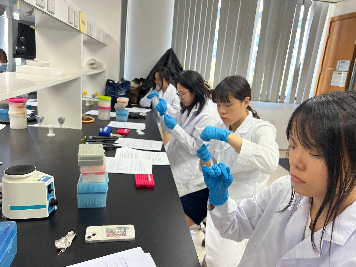 Led by FHS Associate Professor Chris Wong Koon Ho and Senior Instructor Kaeling Tan, a total of 32 Form 5 students from the School of the Nations (SON) participated in the workshop. Prof Wong said that the activity demonstrated FHS’s commitment to promoting community engagement and science education. Through organising practical workshops, the faculty aims to give back to society by sharing its academic resources and expertise with the local community. The workshops also address the lack of science experiments in the secondary school curriculum by providing senior students with experiential learning opportunities outside the classroom. It is hoped that such exposure to real-world scientific practices will inspire students to pursue careers in science.
