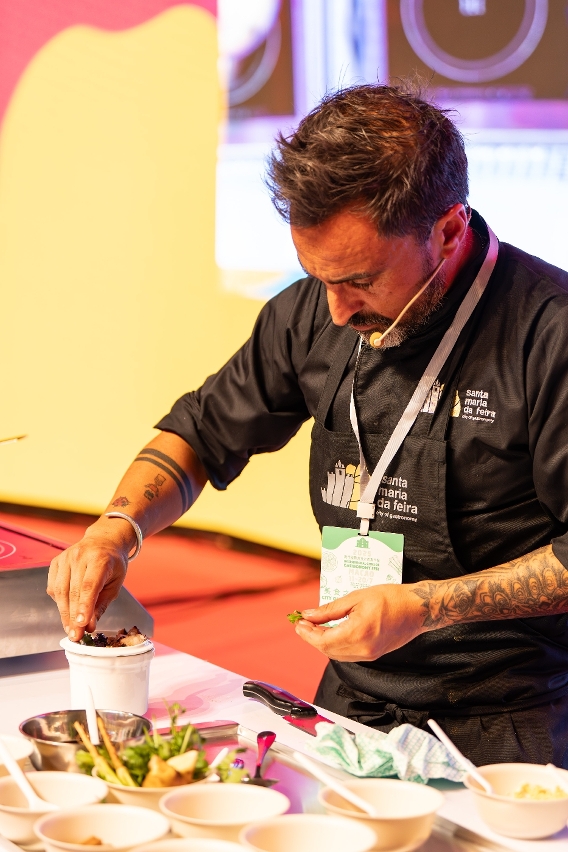 Six acclaimed chefs from the six integrated resort enterprises in Macao demonstrated their extraordinary cooking skills today (16 July), several of whom once joined the panel discussions at “International Gastronomy Forum, Macao” as guest speakers. Their exquisite dishes include Spicy pan tossed noodles in a baked tofu basket presented by Executive Sous Chef of The Londoner Macao at Sands China, Jun Kim; Macanese stuffed squid presented by Chef de Cuisine at MGM, Lo Kam Ming; Chicken shish tavuk and Muhammara presented by Chef de Cuisine of Grand Lisboa Palace Resort Macau under SJM Resorts, S.A., Murat Kara; Fish with pine nut sauce presented by Assistant Manager of the Wynn Food & Beverage Academy (Culinary) of Wynn Resorts Macau, Otilia Rodrigues Novo; Traditional bacalhau cakes and Roasted sardines with bell pepper salad and olives on sourdough presented by Executive Chef at Andaz Macau of Galaxy Entertainment Group, André Lai; and Cod fish chorizo fritter with mixed bean salsa presented by Restaurant Head Chef of Melco Resorts & Entertainment, Arquimino Lameiras.