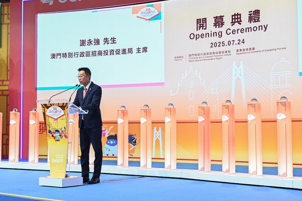 The 2025 Guangdong & Macao Branded Products Fair (2025GMBPF), jointly organised by the Commerce and Investment Promotion Institute (IPIM) of the Macao Special Administrative Region and the Department of Commerce of Guangdong Province, officially opened on 24 July.