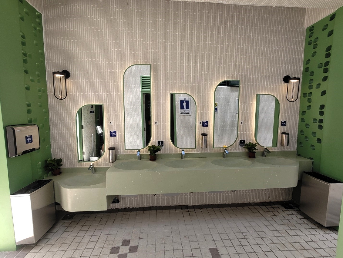 The children’s playground in Flower City Park is about 490 square metres in area, and the facilities and mats showed signs of ageing after years of use. During the optimisation and reorganisation this time, play facilities suitable for use by children aged 2 to 12 are installed, including climbing and balance play equipment, slides, swings and others, providing children of appropriate age with diversified play facilities. Meanwhile, the playground is paved with seamless safety mats with addition of washbasins for children and barrier-free access to connect the children’s playground and the activity room of Flower City Park to optimise the leisure activity space for the public. The playground has reopened for children to have fun.