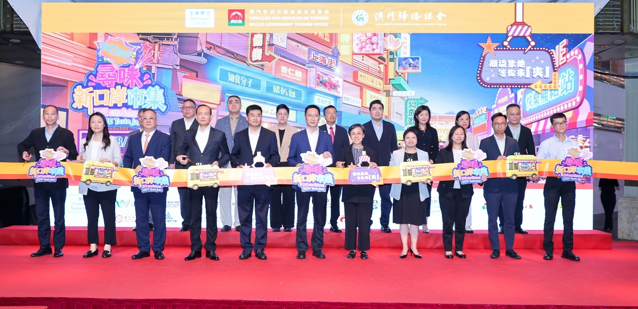 The opening ceremony of the “ZAPE Taste Jam” is officiated by a distinguished lineup of guests, including Deputy Director-General of the Coordination Department of the Liaison Office of the Central People's Government in the Macao SAR, Wang Jianfeng; Deputy Director-General of the Economic Affairs Department of the Liaison Office of the Central People's Government in the Macao SAR, Yang Quanzhou; Director of the Macao Government Tourism Office (MGTO), Maria Helena de Senna Fernandes; President of the Association of Returned Overseas Chinese Macau, Alex Lao; Acting Director of the Labour Affairs Bureau, Chan Tze Wai; Department Head of the Economic Activities Development Department of the Economic and Technological Development Bureau, Lau Kit Lon; Department Head of the Consumer Rights and Interests Protection Department of the Consumer Council, U Kam; Acting Department Head of the Cultural and Recreational Affairs and Civic Education Department of the Municipal Affairs Bureau, Pong Sio Wan; Acting Department Head of the Macao Operations Department of the Fire Services Bureau, Chan Meng Tak; Acting Commander of the Macao Police Department of the Public Security Police Force, Cheang Seng Lon; and Head of the Environmental Infrastructure Management Centre of the Environmental Protection Bureau, Chan Kuok Hou, as well as representatives from various associations, chambers of commerce, and media partners.