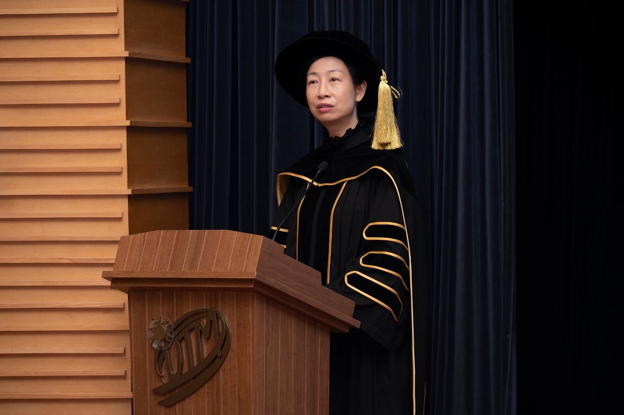 During the ceremony, UTM Rector Fanny Vong Chuk Kwan delivered welcoming remarks to new students, expressing her delight in having them join the vibrant and culturally diverse community of UTM. She remarked that the new renovation of the Yiu Tung Building and Educational Residence will provide faculty members and students with more comprehensive educational and training facilities, as well as expanded spaces for activities. From this academic year all degree programmes students will attend their classes mainly in the Taipa Campus.