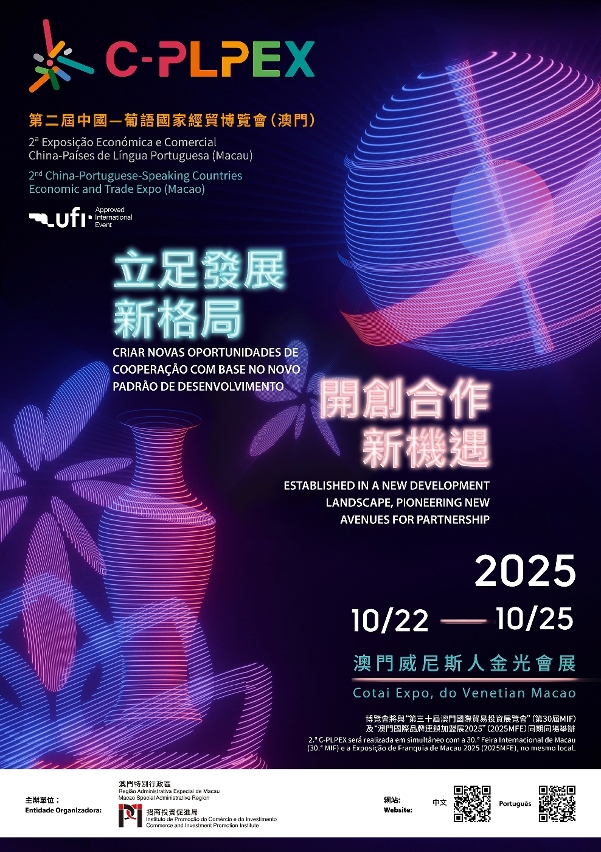 The “2nd China-Portuguese-Speaking Countries Economic and Trade Expo (Macao)” (2nd C-PLPEX), themed “Established in a New Development Landscape, Pioneering New Avenues for Partnership”, will be held from 22 to 25 October 2025 (Wednesday to Saturday) at Cotai Expo, The Venetian Macao. Aimed at implementing the Action Plan for Economic and Trade Co-operation (2024-2027) signed at the 6th Ministerial Conference of Forum Macao, the 2nd C-PLPEX introduces three new sectors for economic and trade co-operation—agricultural industry chain, new energy, and blue economy—gathering over 480 enterprises from China and Portuguese-speaking Countries (PSCs) to exhibit, with 13 projects making their debut.
