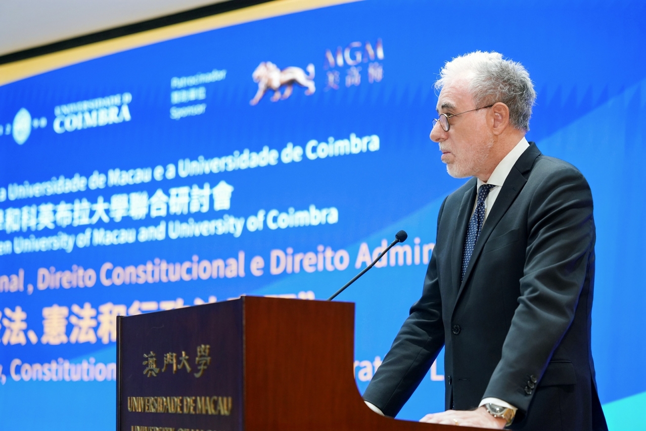 João Nuno Calvão da Silva, vice rector of the University of Coimbra, praised UM for its remarkable achievements in recent years and extended greetings to the guests. He highlighted the partnership between the faculties of law at the two universities, and noted that the two universities have furthered their academic collaboration to encompass areas such as medicine and cultural heritage, reflecting the deep friendship between China and Portugal.