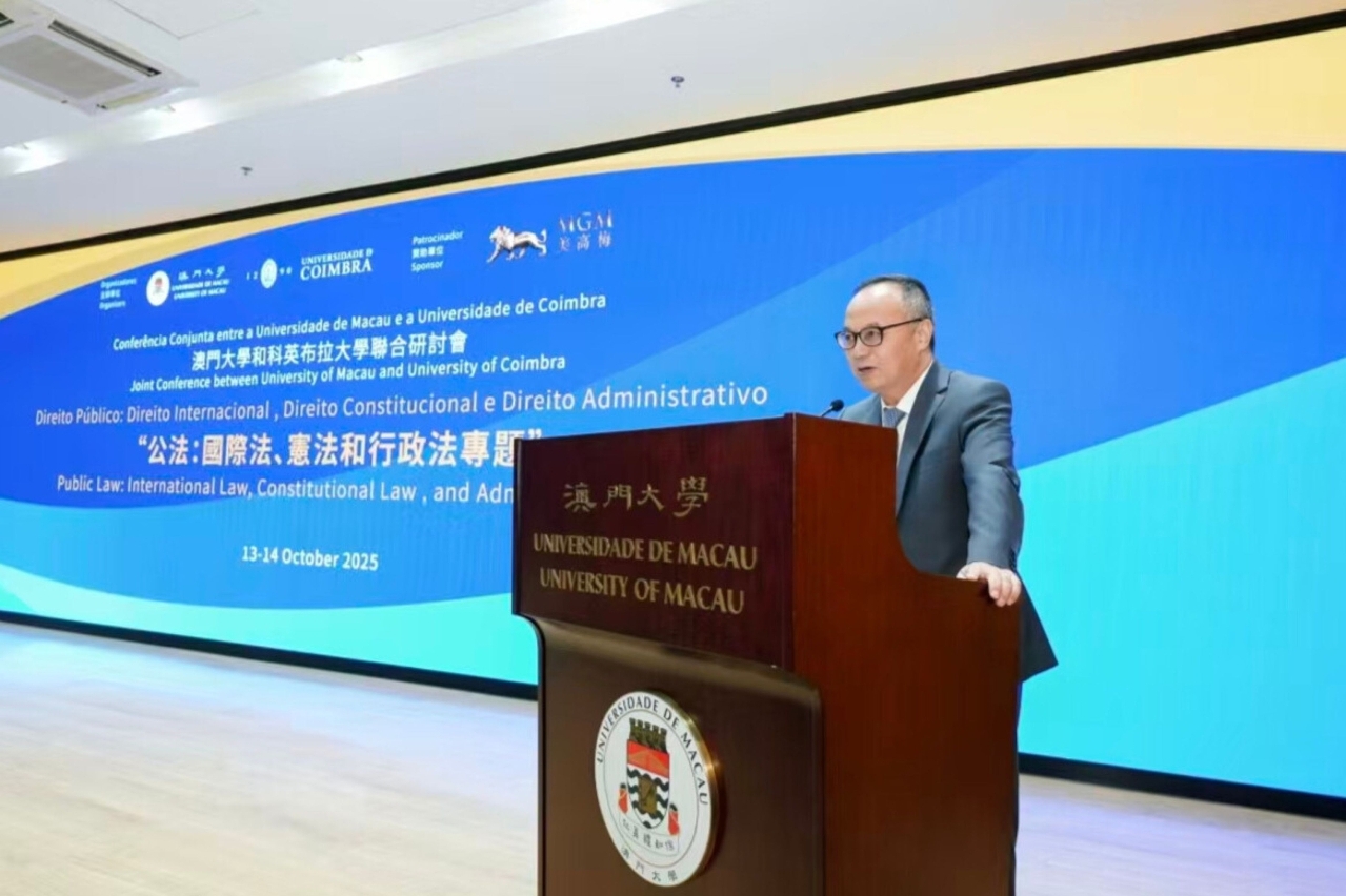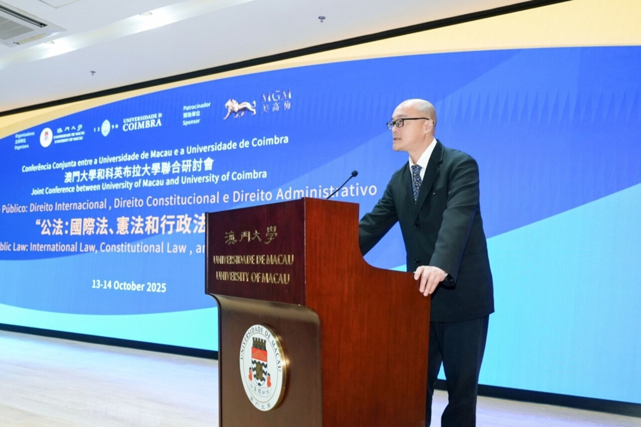 Tong Io Cheng, dean of the UM Faculty of Law, noted that the successful implementation of the ‘one country, two systems’ policy, the harmonious coexistence of different legal systems, and the deep integration of traditional and modern legal practices have made Macao an exemplar of public law practice. He also emphasised that the mission of legal education is to produce legal professionals who are equipped with theoretical knowledge and an international perspective, and that cooperation between UM and the University of Coimbra will inject new impetus into the development of legal studies. He expressed hope that scholars participating in the conference will contribute to the development of legal theory and the practice of the rule of law.