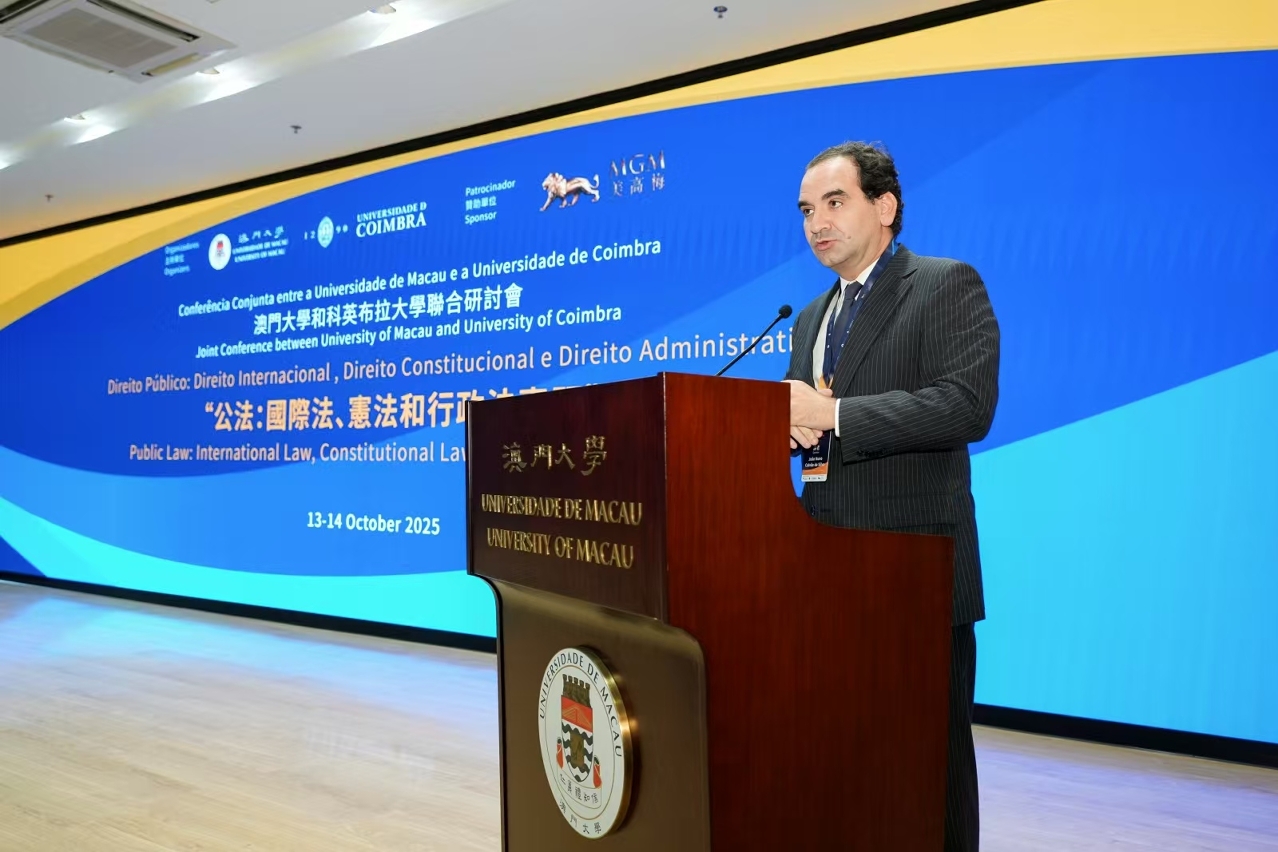 The two-day conference is jointly organised by UM and the University of Coimbra, with the support of UMTEC Limited and sponsorship from MGM. Themed ‘Public Law: International Law, Constitutional Law, and Administrative Law’, the event features three sessions focusing on international law, constitutional law, and administrative law, with presentations delivered by 14 scholars from the Chinese mainland, Macao, Portugal, Brazil, Angola, and Mozambique.