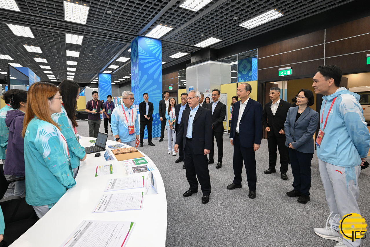 The Chief Executive visited athlete accommodation for interactions with competitors, and inspected the Command Centre, the Main Press Centre, and the International Broadcast Centre at the Macao East Asian Games Dome, where Mr Sam had words of encouragement for volunteers and operational staff.