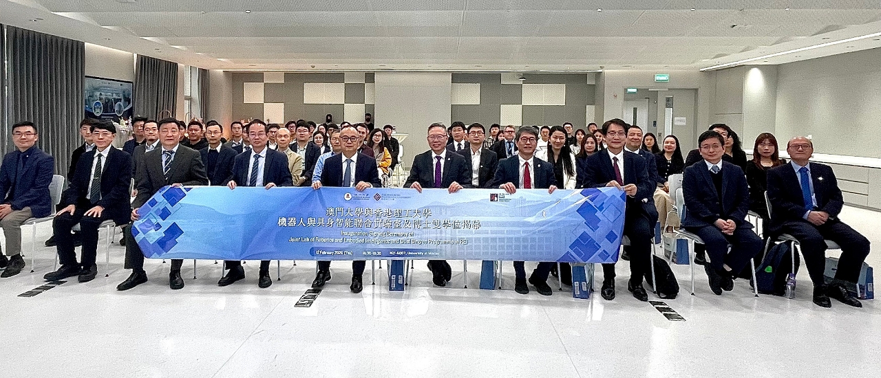 The University of Macau (UM) and The Hong Kong Polytechnic University (PolyU) signed an agreement today (12 February) at UM to establish the first joint laboratory co-funded by Macao and Hong Kong—the Joint Laboratory for Robotics and Embodied Intelligence. The initiative aims to strengthen collaborative innovation in higher education and scientific research in the Guangdong–Hong Kong–Macao Greater Bay Area. In addition, UM and PolyU announced the launch of a dual PhD programme featuring joint supervision by faculty members from both universities, marking a significant step forward in collaboration on frontier technologies and high-level talent development. The joint PhD programme is now open for applications.