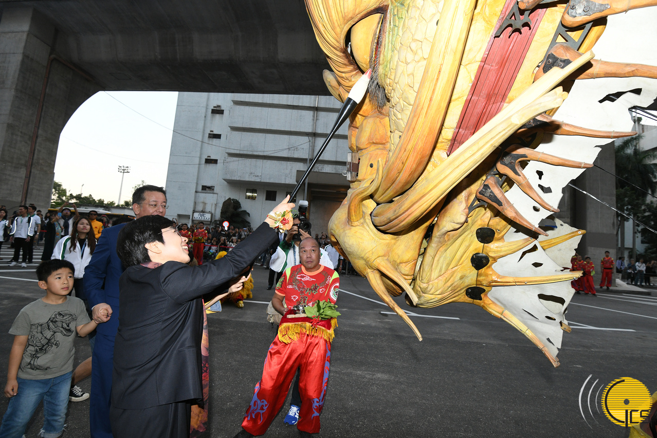 • Secretária para a Administração e Justiça, Sónia Chan, na cerimónia de inauguração do Desfile da Instalação Mecânica “Espírito do Cavalo-Dragão”, em celebração do 70º aniversário da Implantação da República Popular da China e do 20º aniversário do Retorno de Macau à Pátria.