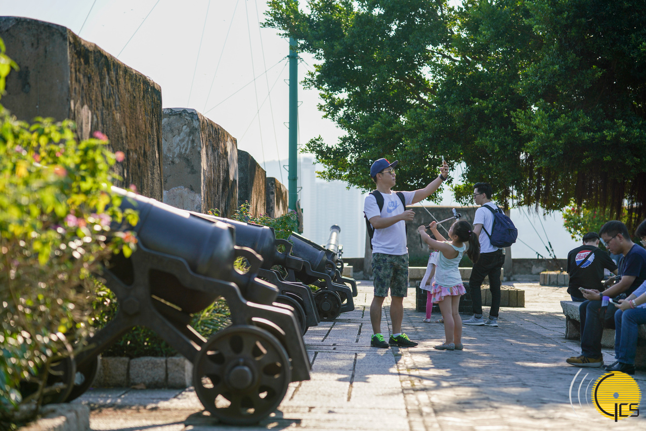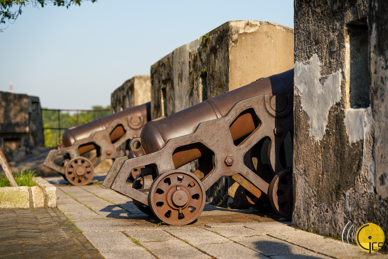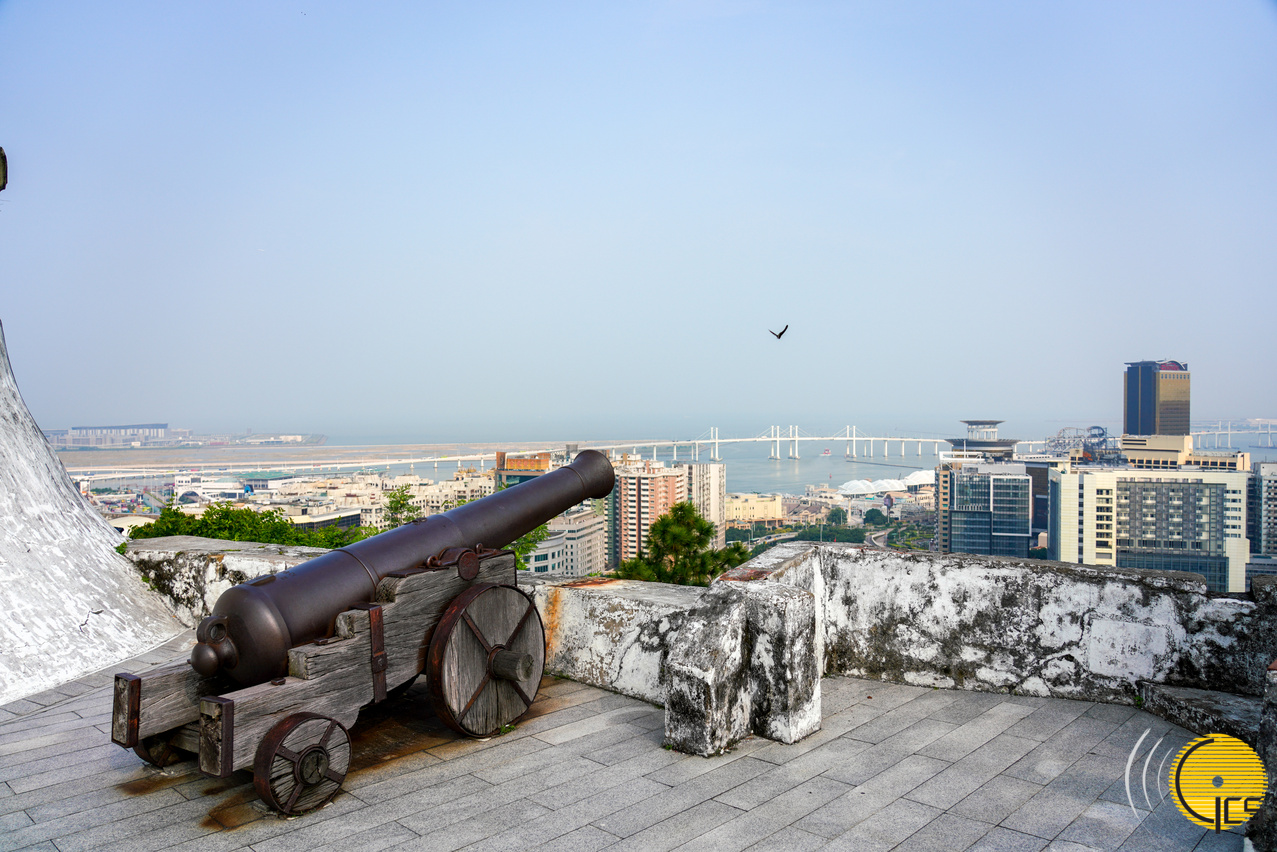 • Macau tinha muitos canhões nas montanhas e na costa marítima os quais foram reformados em relíquias históricas. A figura mostra a Fortaleza de Nossa Senhora de Guia, construída em 1622. Tanto a Fortaleza, a Capela de Nossa Senhora das Neves como o Farol da Guia são património cultural de Macau.