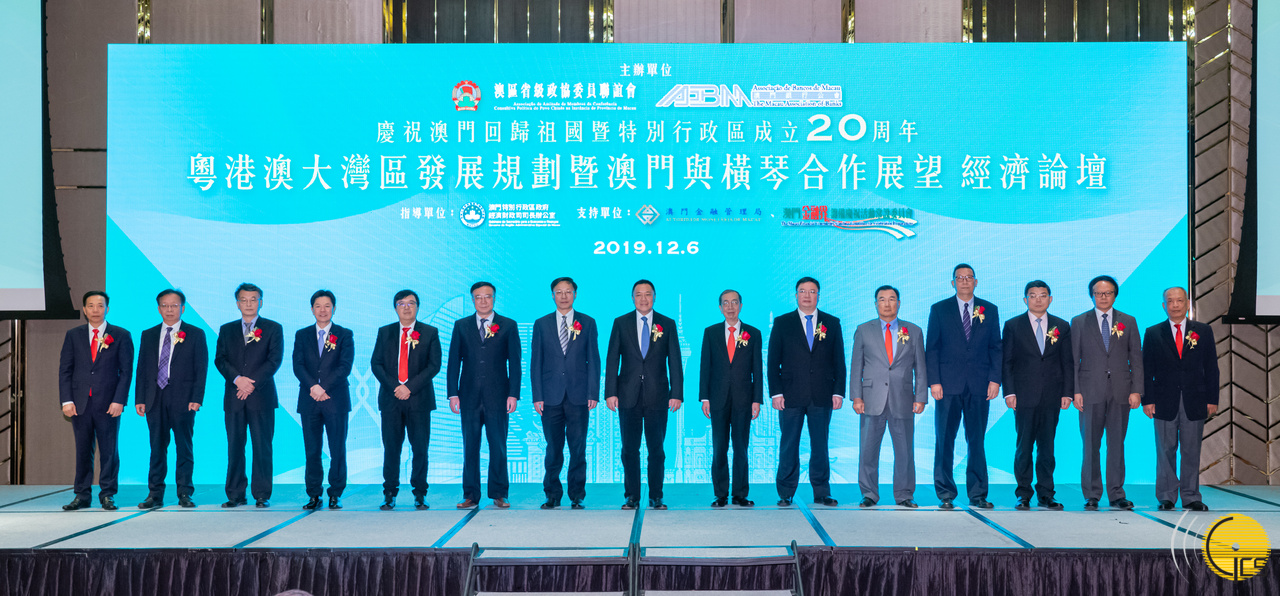 • Secretário para a Economia e Finanças, Lionel Leong num fórum económico sobre o projecto de desenvolvimento da Grande Baía Guangdong, Hong Kong e Macau e as perspectivas da cooperação entre Macau e Hengqin , co-organizado pela Associação de Amizade de Membros da Conferência Consultiva Política do Povo Chinês na Instância de Província de Macau e pela Associação de Bancos de Macau no âmbito do 20º aniversário do regresso de Macau à Pátria.