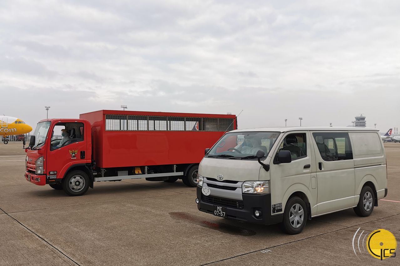 • Veículos já preparados no aeroporto para o transporte dos residentes que regressaram de Hubei.