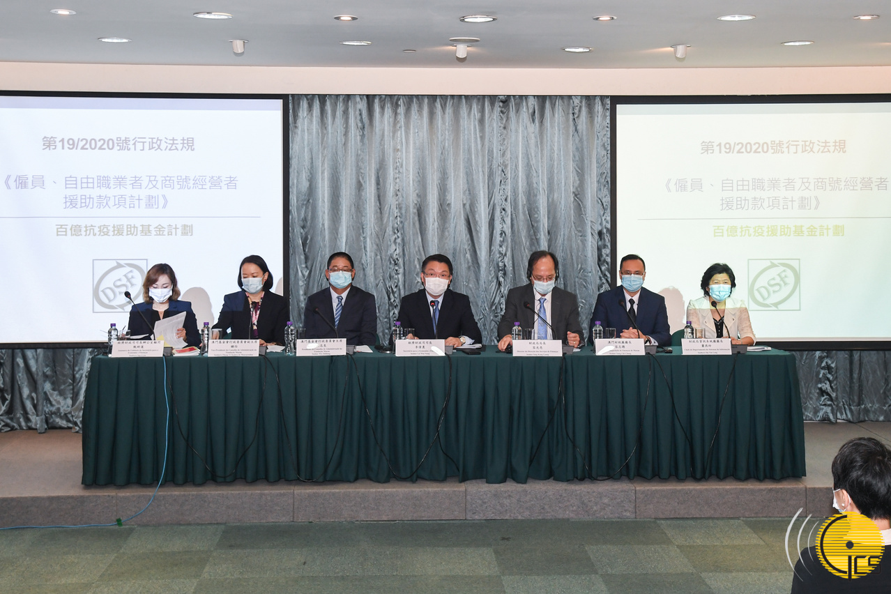 • Secretário para a Economia e Finanças, Lei Wai Nong, na conferência de imprensa sobre o Plano de Apoio Pecuniário aos Trabalhadores, Profissionais Liberais e Operadores de Estabelecimentos Comerciais