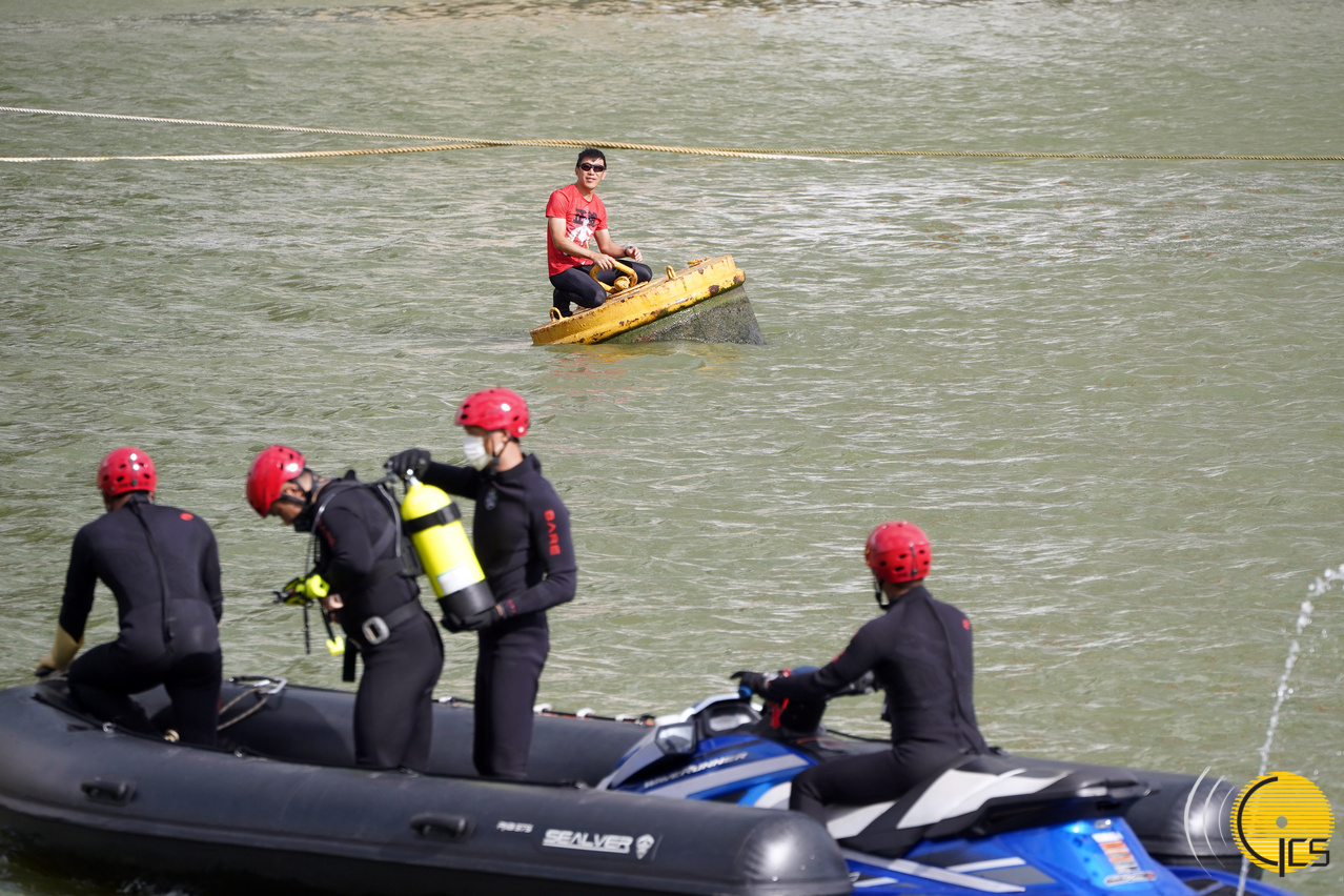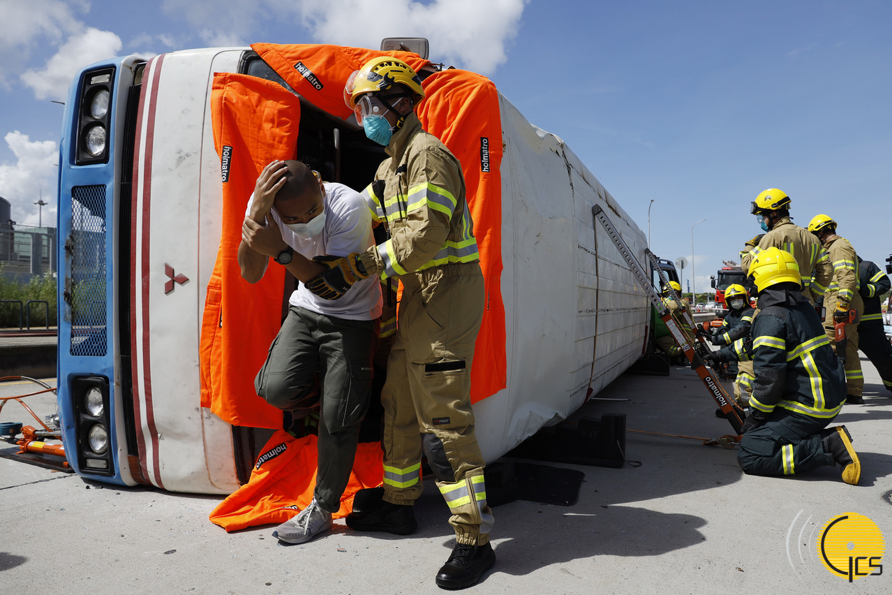 • Simulacro "Peixe Cristal 2020" - Corpo de Polícia de Segurança Pública e representantes da Associação dos Proprietários de Máquinas de Construção Civil de Macau realizam operação de salvamento em acidente com autocarro capotado.