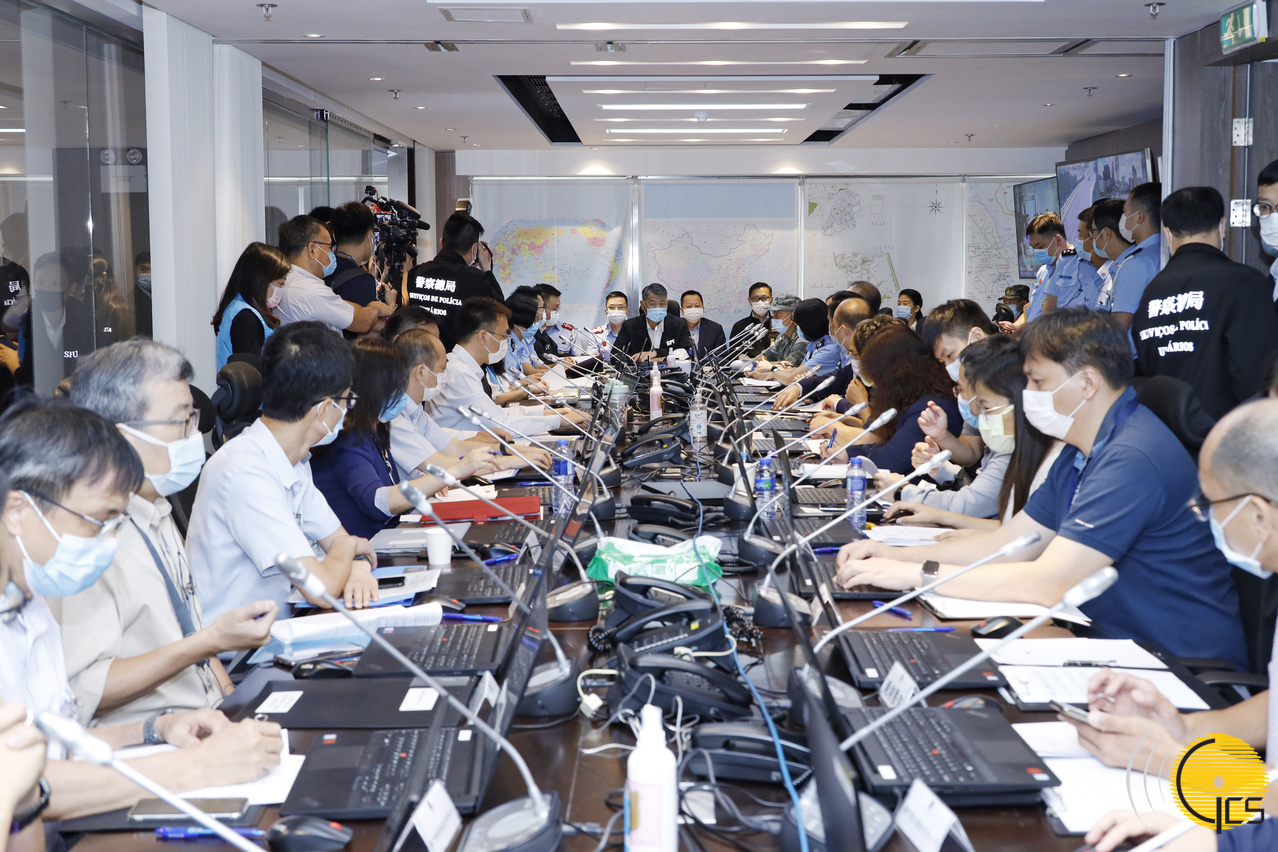 • Simulacro "Peixe Cristal 2020" - Comandante-geral dos Serviços de Polícia Unitários e comandante da Acção Conjunta, Leong Man Cheong, preside à reunião da Estrutura de Protecção Civil, no Centro de Operações de Protecção Civil.