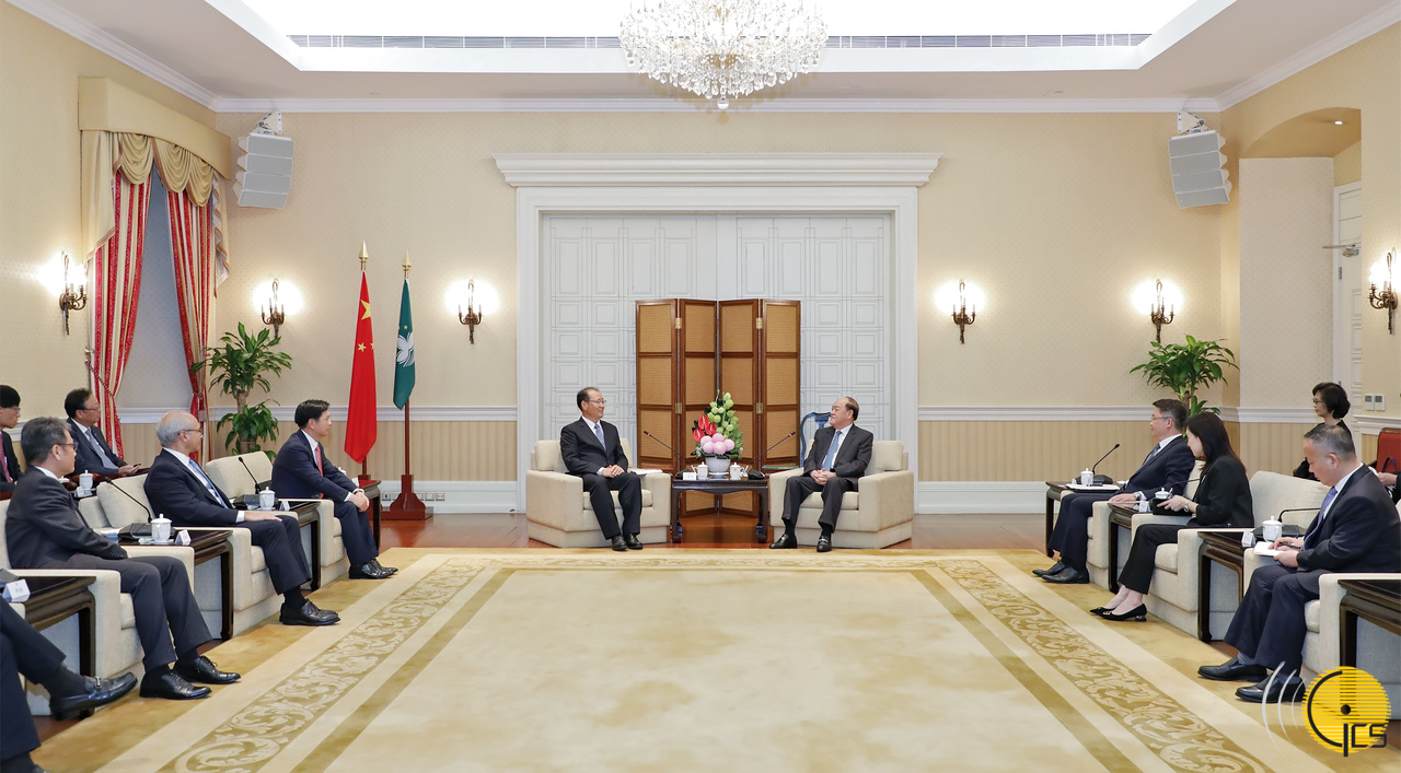 • Chefe do Executivo, Ho Iat Seng, num encontro com o presidente da Associação de Bancos de Macau, Li Guang.
