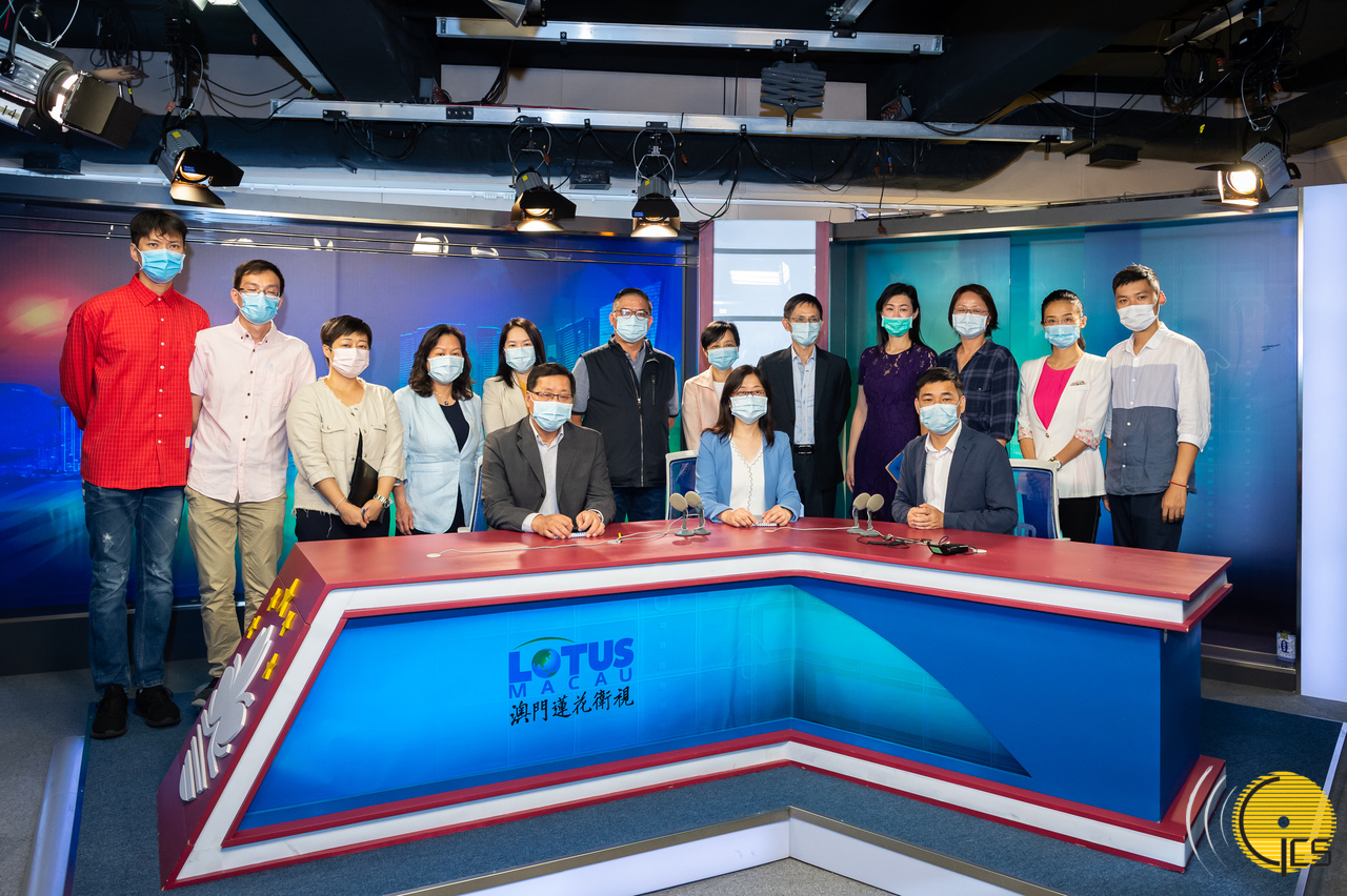 • Directora do Gabinete de Comunicação Social (GCS), Inês Chan (ao centro na 1ª fila), a sua equipa, com o director e director da estação da Macau Lotus TV Media via Satélite, Limitada, Li Zi Song (à direita na 1ª fila), o subdirector da estação, Zhang Zhi Cheng (sétimo à direita na 2ª. fila), a subdirectora da estação, Li Hong Yi (quarta à direita na 2ª fila), a editora-chefe adjunta, Yan Xiaoli (terceira à direita na 2ªfila).