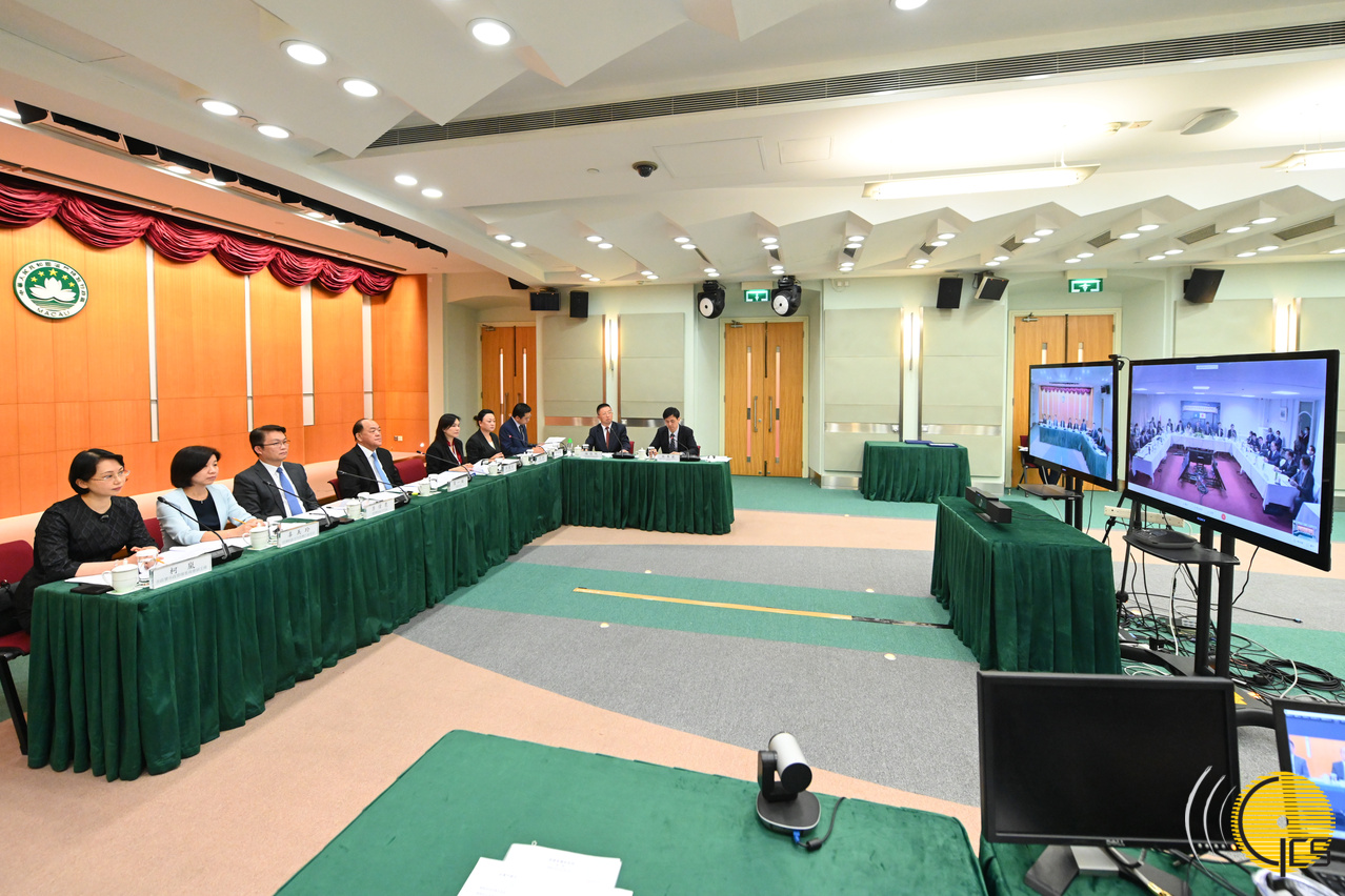 Reunião por videoconferência do Chefe do Executivo, Ho Iat Seng, com representantes da união parlamentar de amizade entre o Japão e Macau, Grande Baía.