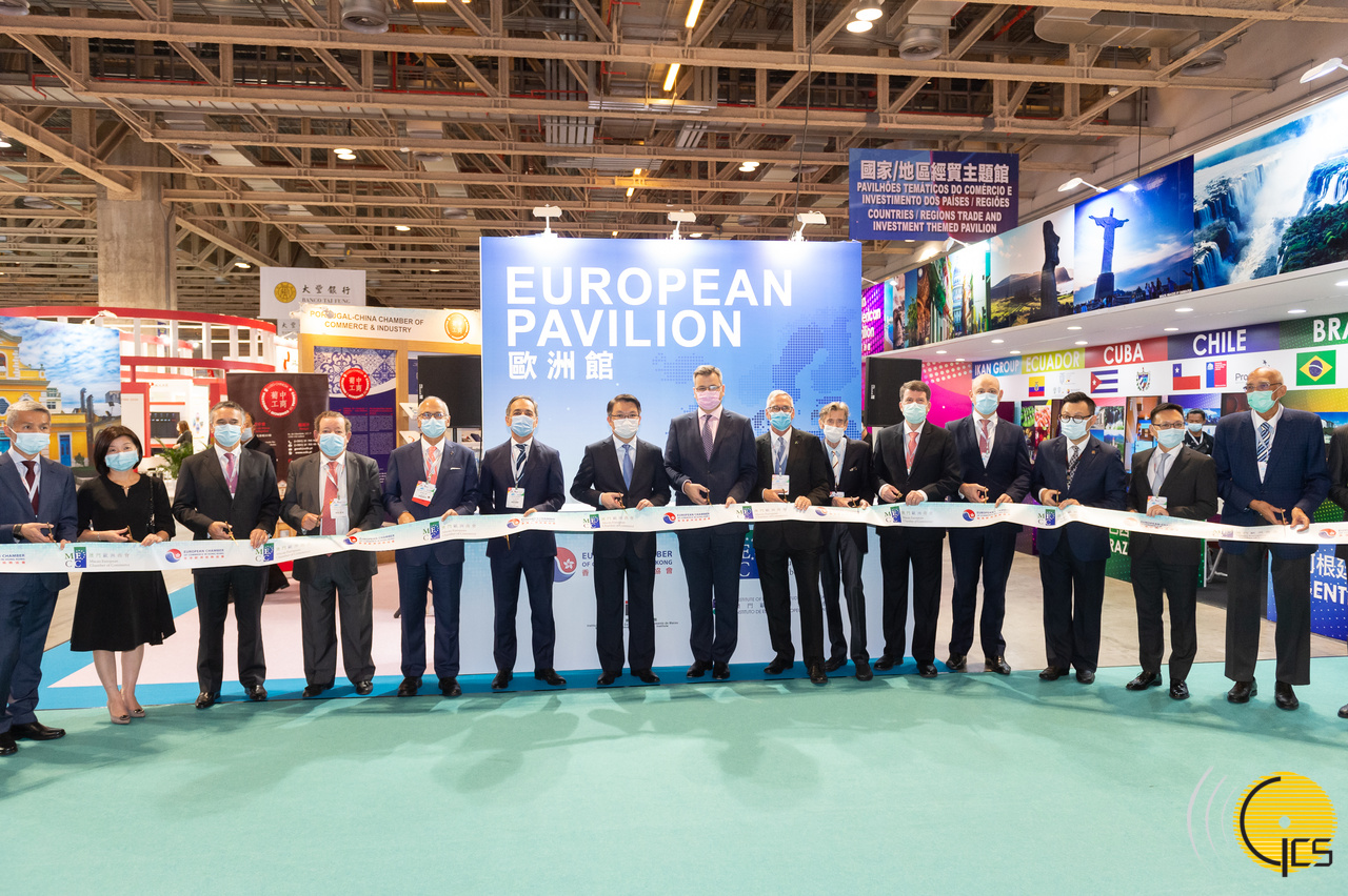 25ª Feira Internacional de Macau, Exposição de Produtos e Serviços dos Países de Língua Portuguesa (Macau) 2020 (2020PLPEX) e Exposição de Franquia de Macau 2020 (2020MFE) --- Secretário para a Economia e Finanças, Lei Wai Nong, preside à cerimónia de inauguração do Pavilhão da Europa.