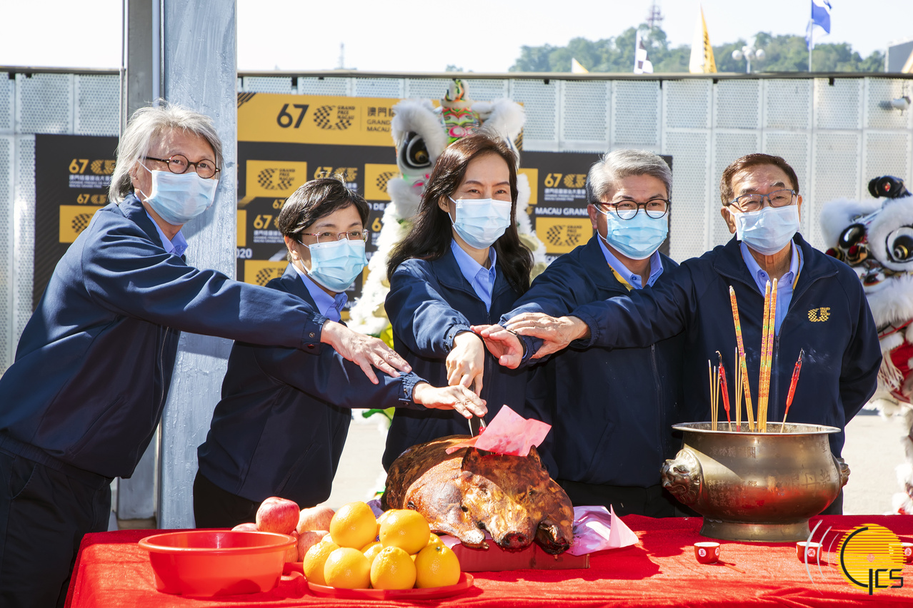• Secretária para os Assuntos Sociais e Cultura e presidente da Comissão Organizadora do Grande Prémio de Macau, Ao Ieong U, preside à cerimónia religiosa tradicional (Pai San) para o 67º Grande Prémio de Macau