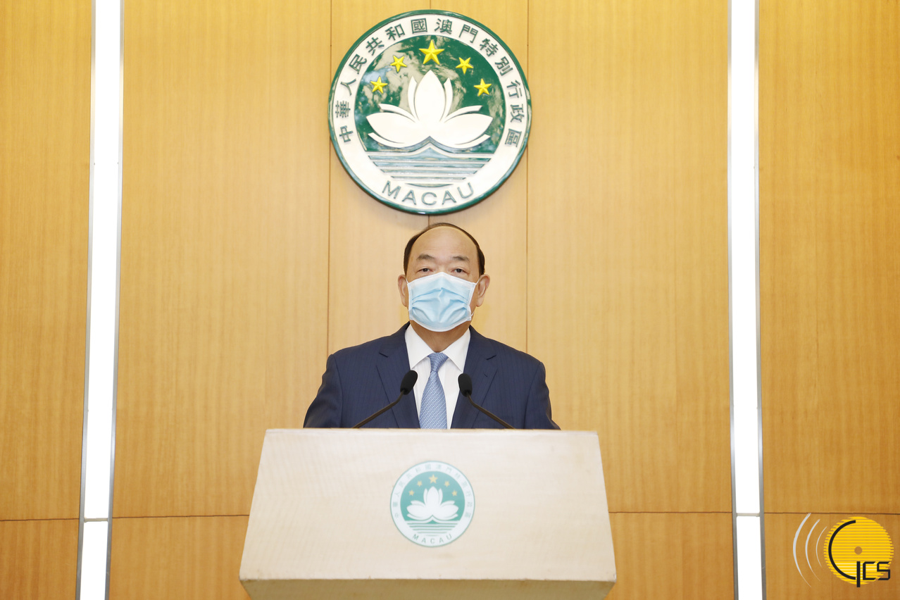 Chefe do Executivo, Ho Iat Seng, responde às perguntas dos jornalistas, em conferência de imprensa, realizada na Sede do Governo, após a apresentação do Relatório das Linhas de Acção Governativa para o Ano Financeiro de 2021.